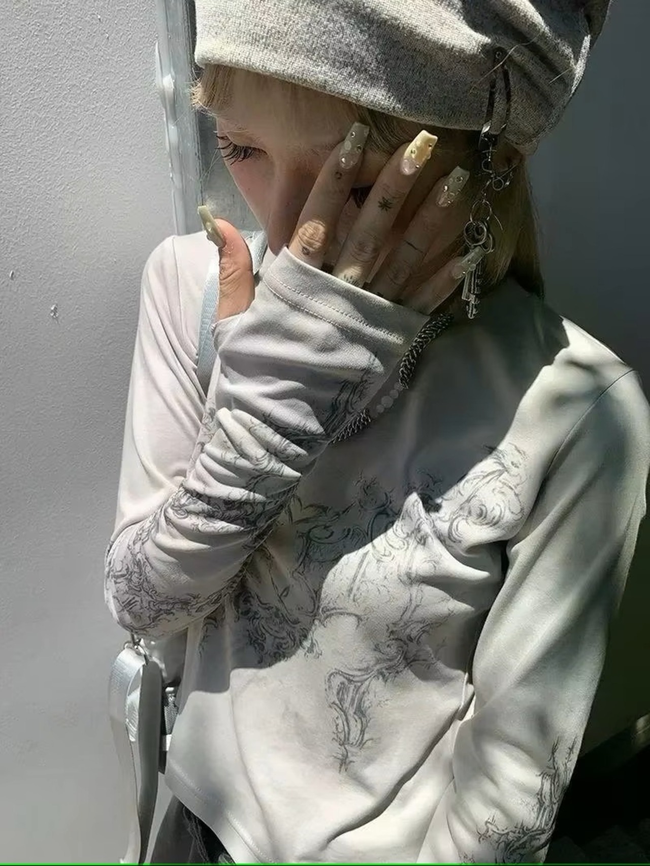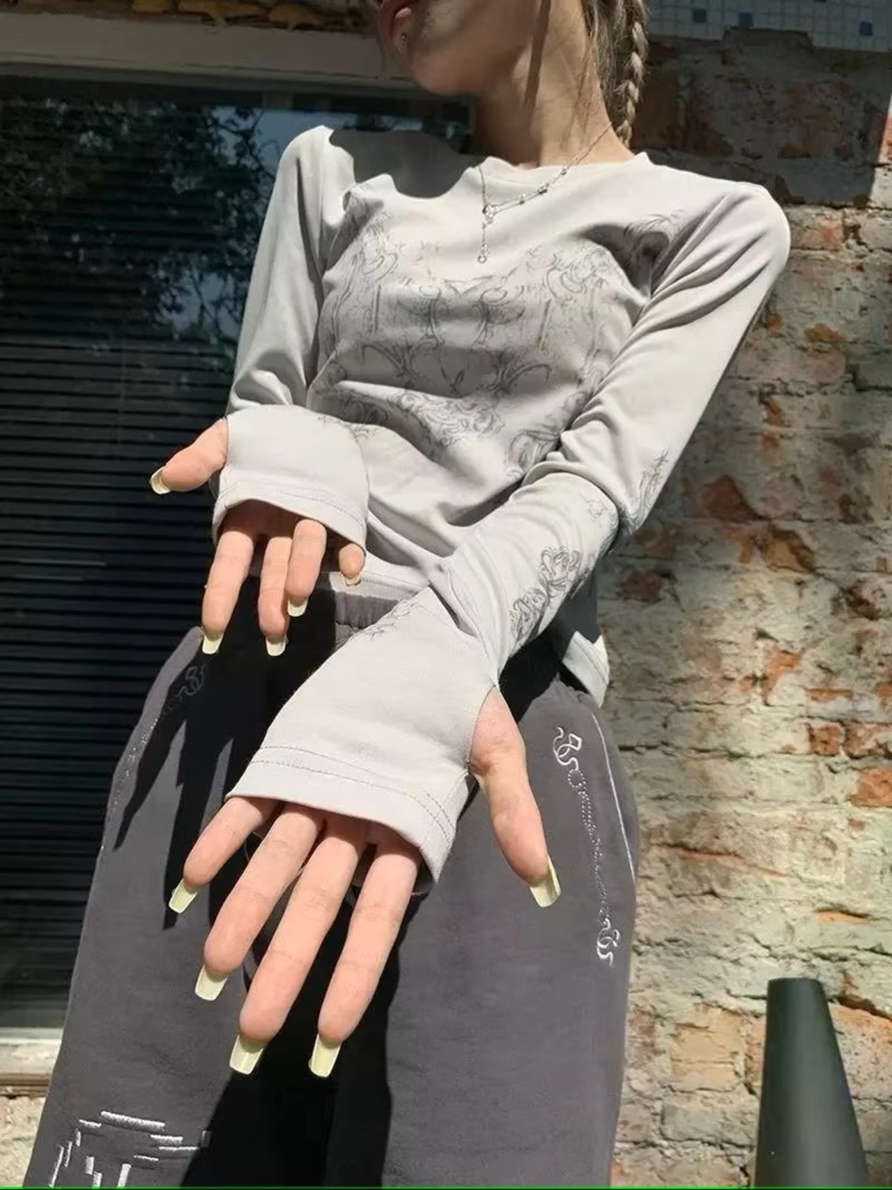 トライバル柄 ロンT Tシャツ トップス 指穴 長袖 韓国 ストリート系 ダンス 衣装 グランジ K-POP ギャル レディース 9T-26