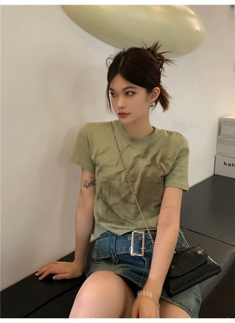 Tシャツ タイダイ 半袖 トップス ショート丈 韓国 ストリート系 Y2Kファッション ダンス 衣装 K-POP HIPHOP ギャル レディース 9T-50