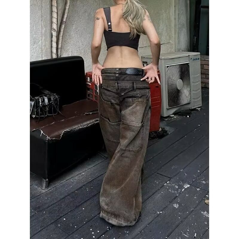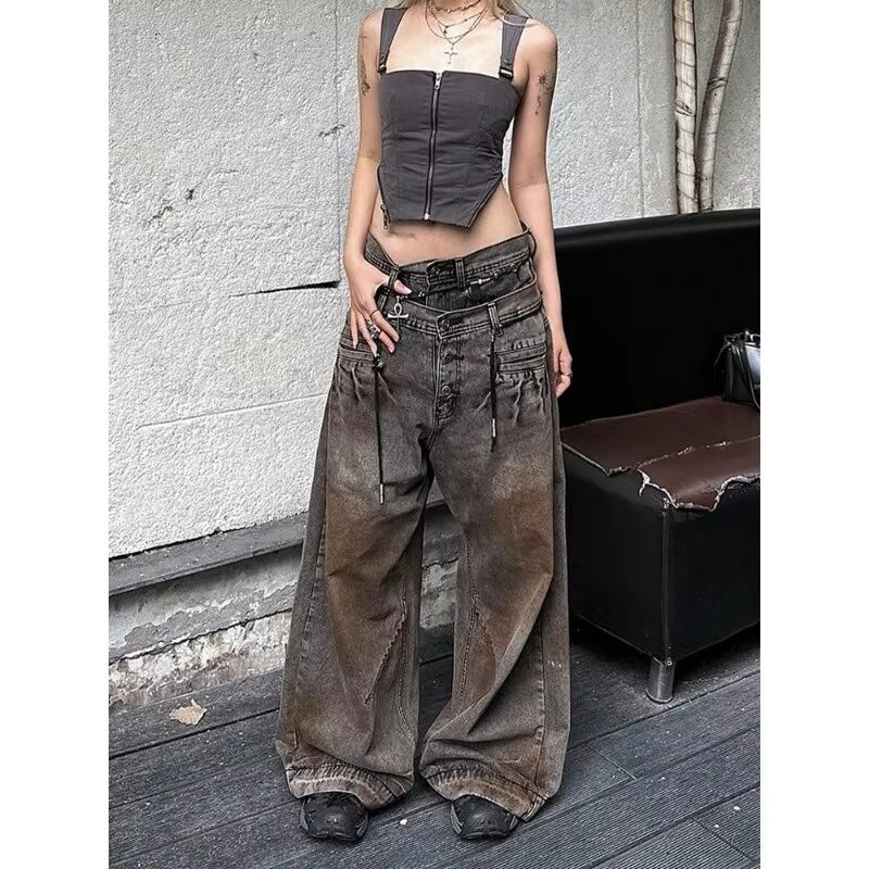 デニム パンツ オーバーダイ 染め 加工 ジーンズ 韓国 ストリート系 グランジ ダンス 衣装 K-POP HIPHOP レディース 9J-24