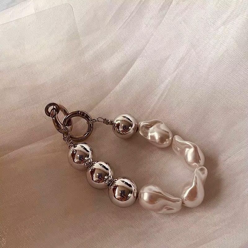 パール メタル ビーズ スマホ ストラップ キーホルダー 韓国 ストリート系 モード系女子 バロック 誕生日 プレゼント レディース ファッション 9ACC-2