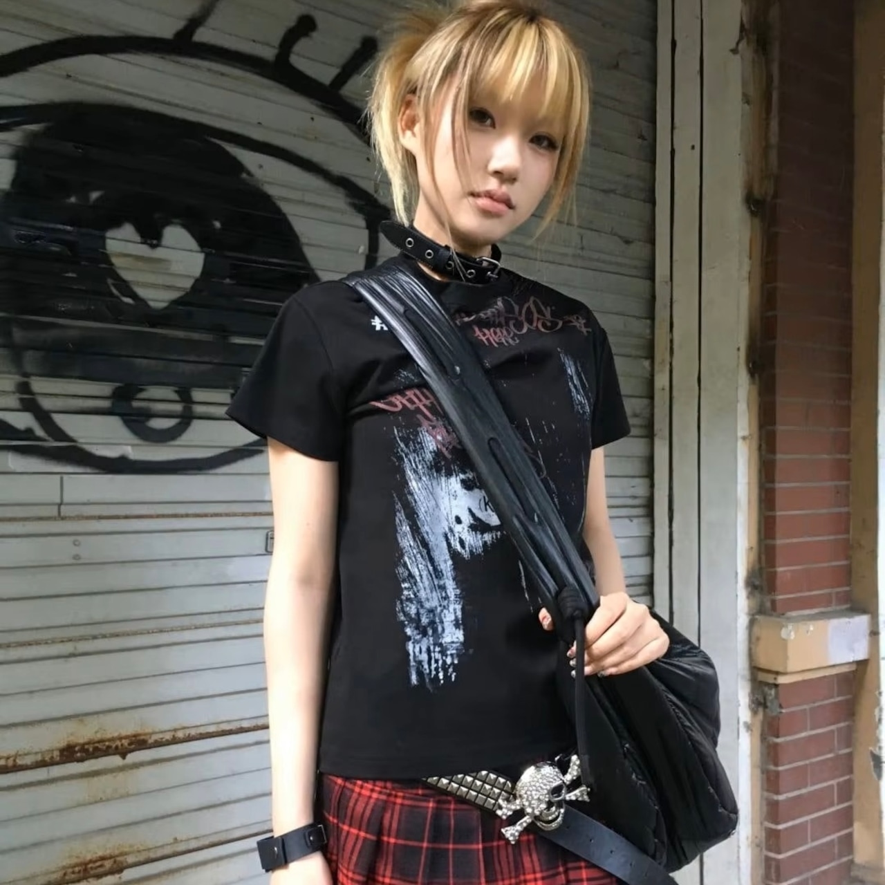 Tシャツ 半袖 韓国 ストリート系 ロゴ レディース トップス Y2Kファッション ダンス 衣装 K-POP HIPHOP ギャル 9T-65