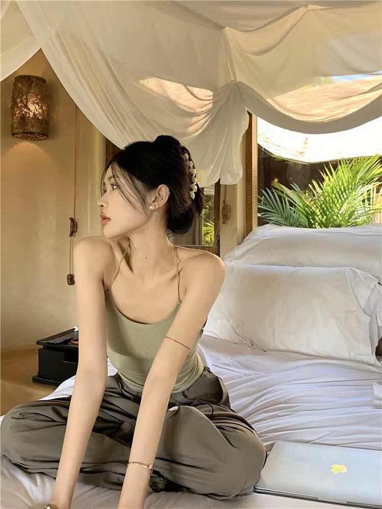 編み上げ キャミソール 背中あき バックオープン カップ付き トップス 韓国 ストリート系 レディース ダンス 衣装 K-POP HIPHOP ギャル 9T-67