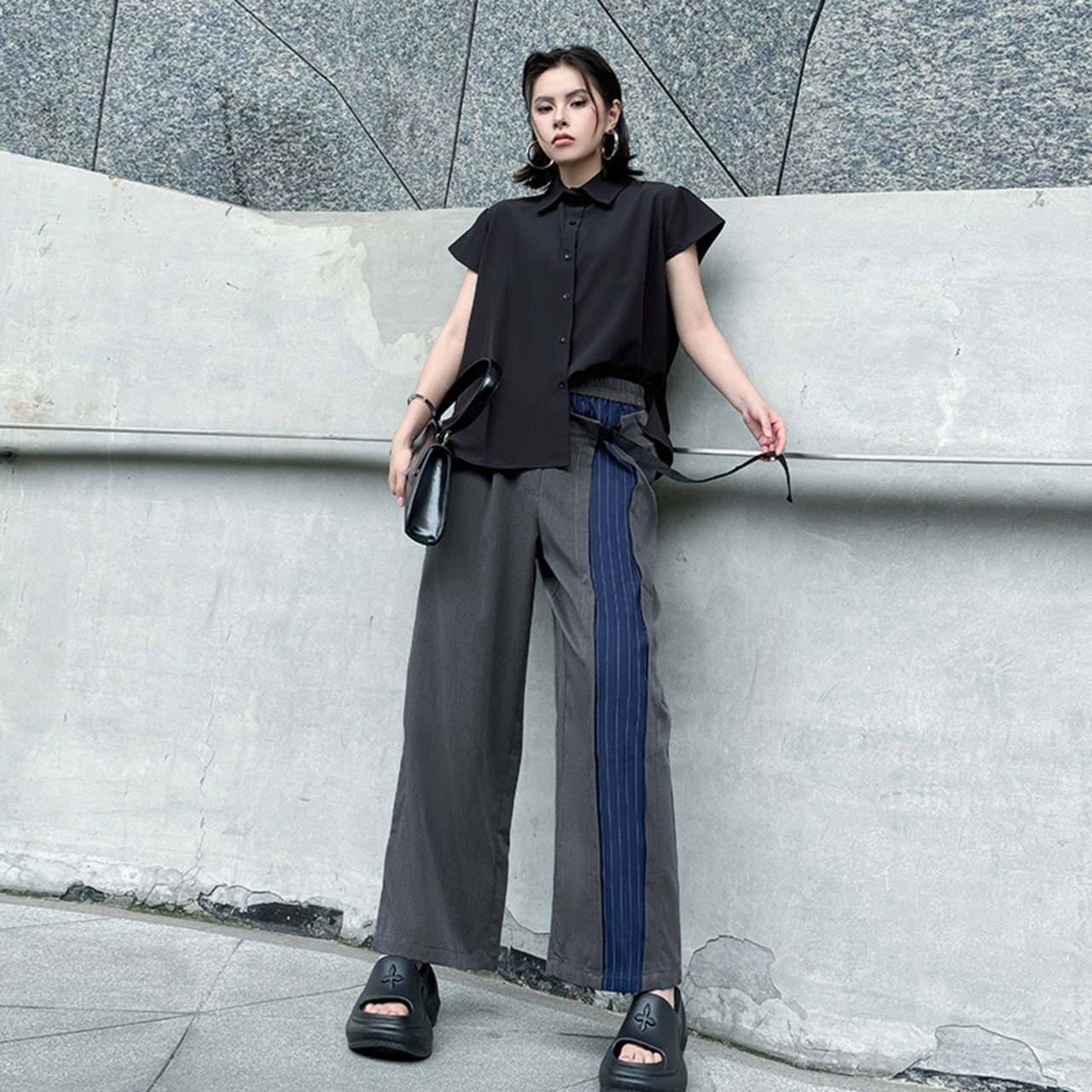 ストライプ柄 切替 ロング パンツ 韓国 ストリート系 モード系女子 ダンス 衣装 K-POP HIPHOP レディース ファッション 9PA-22