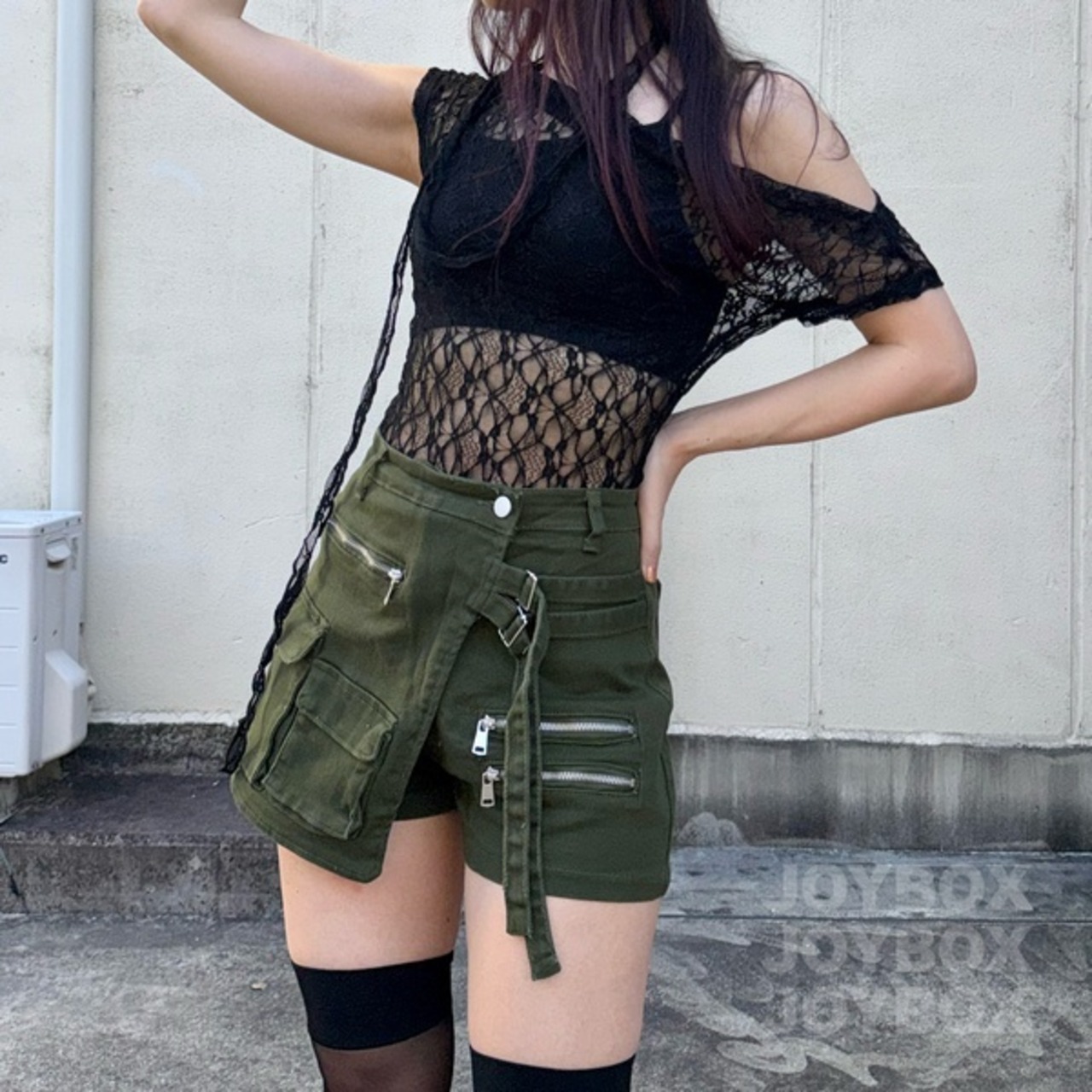 総レース オフショル ブラウス アシンメトリー チョーカー付き 韓国 ストリート系 バレエコア ギャル 夏 レディース 9T-119