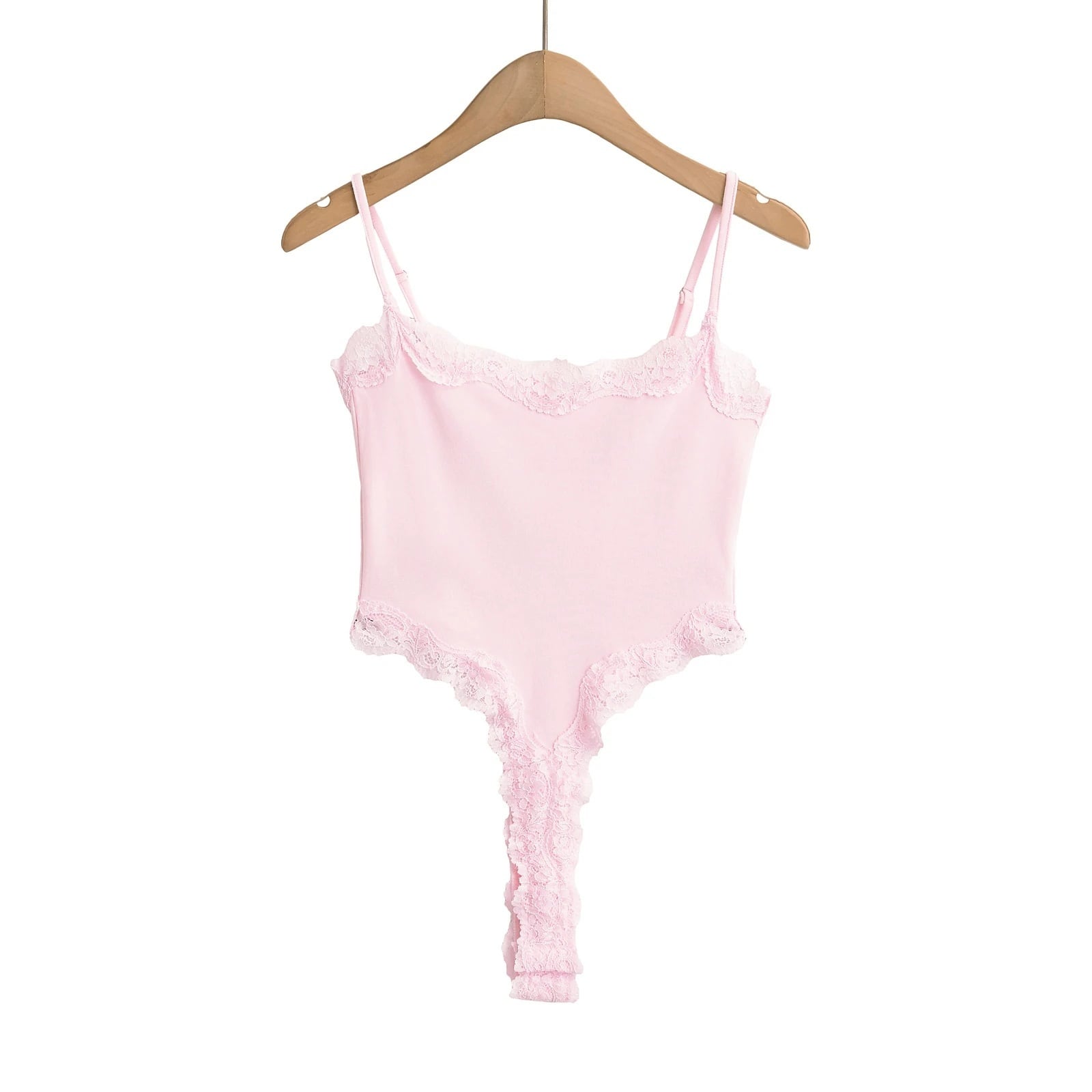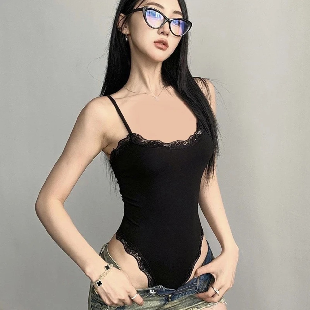 ✔ さりげないレースが映える、大人のためのキャミソール型ボディスーツ。