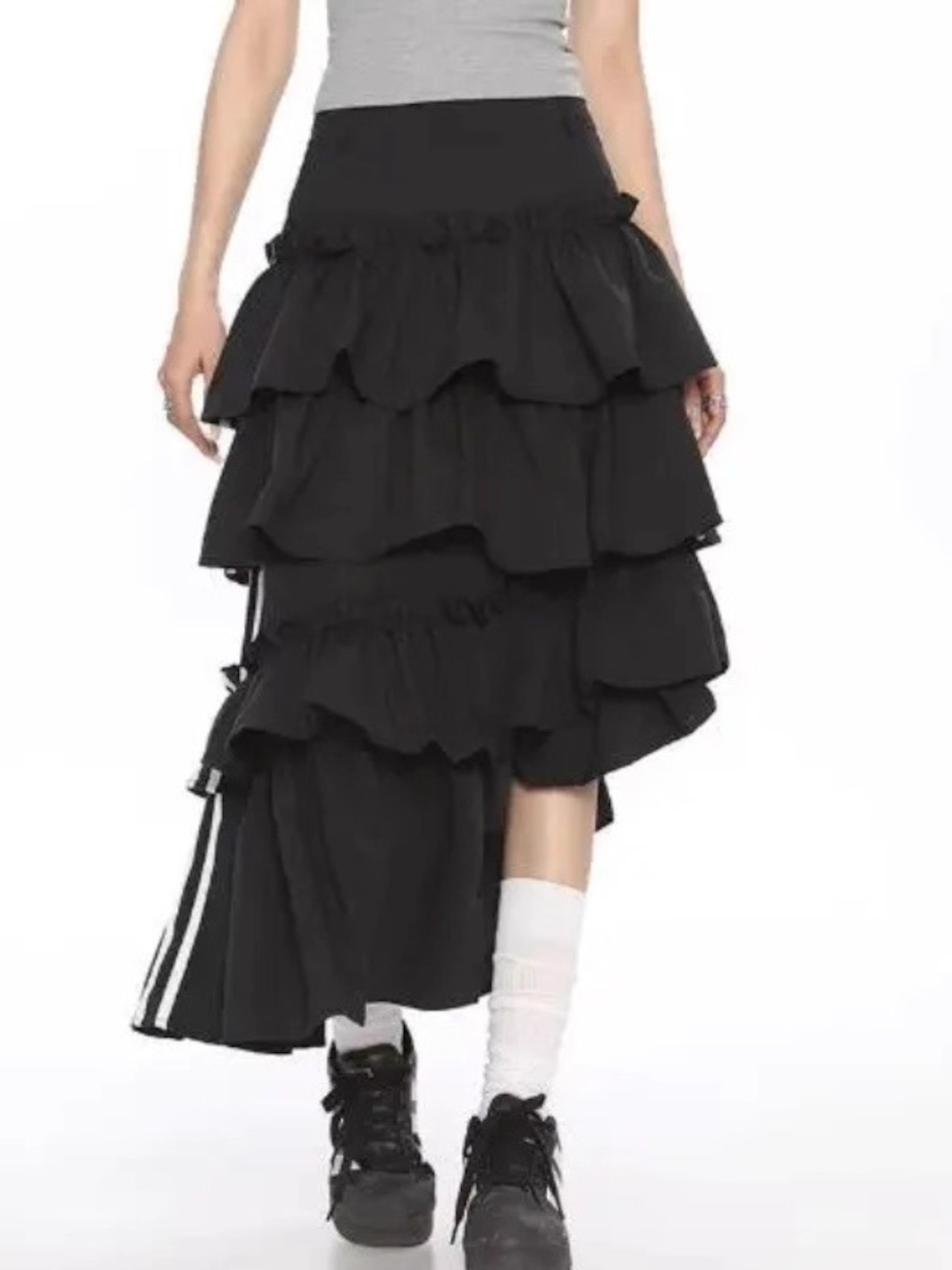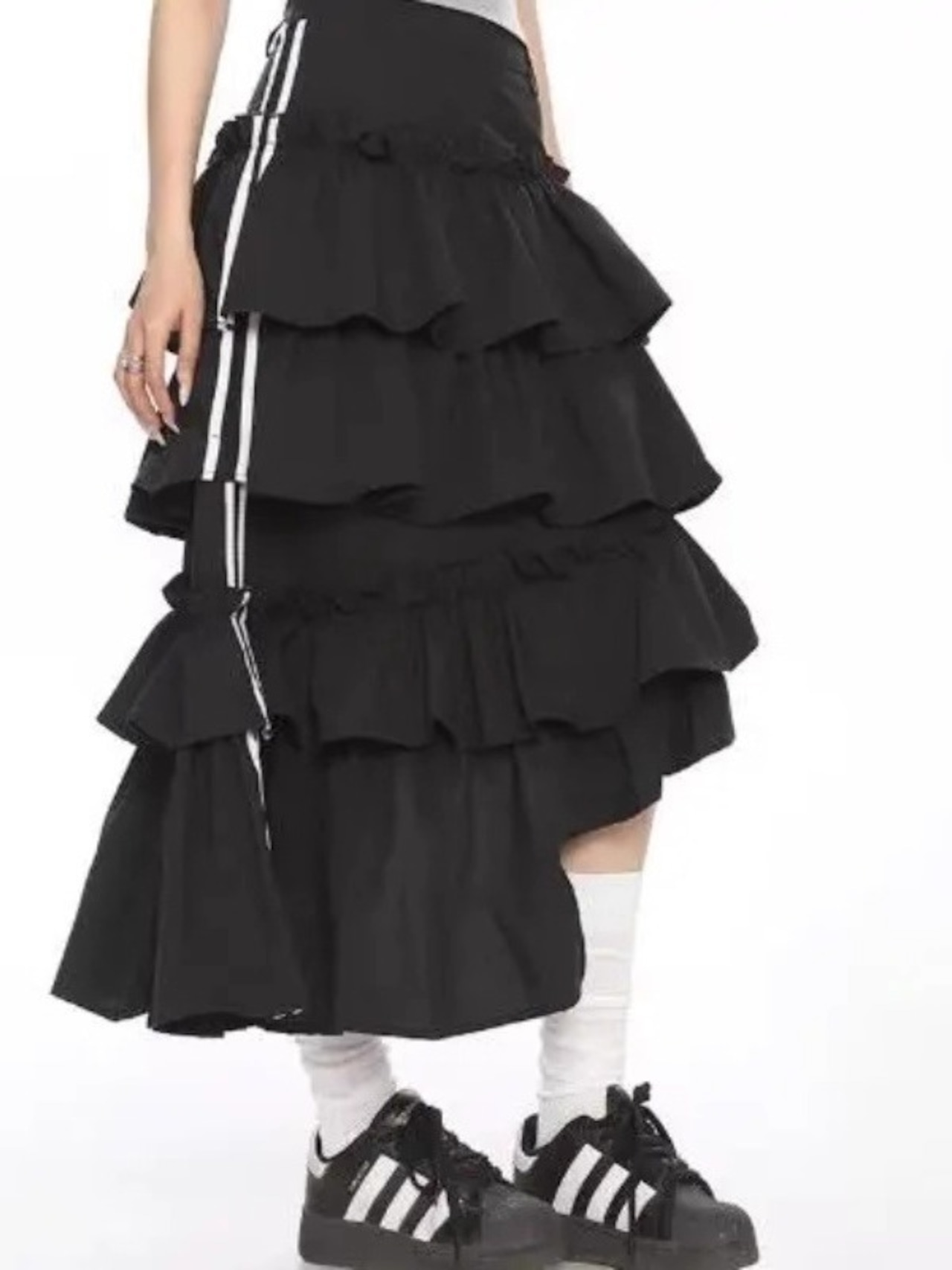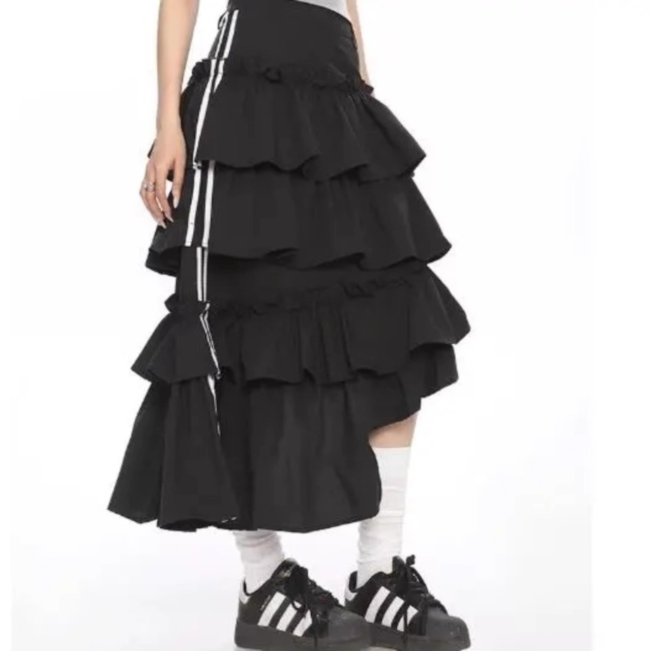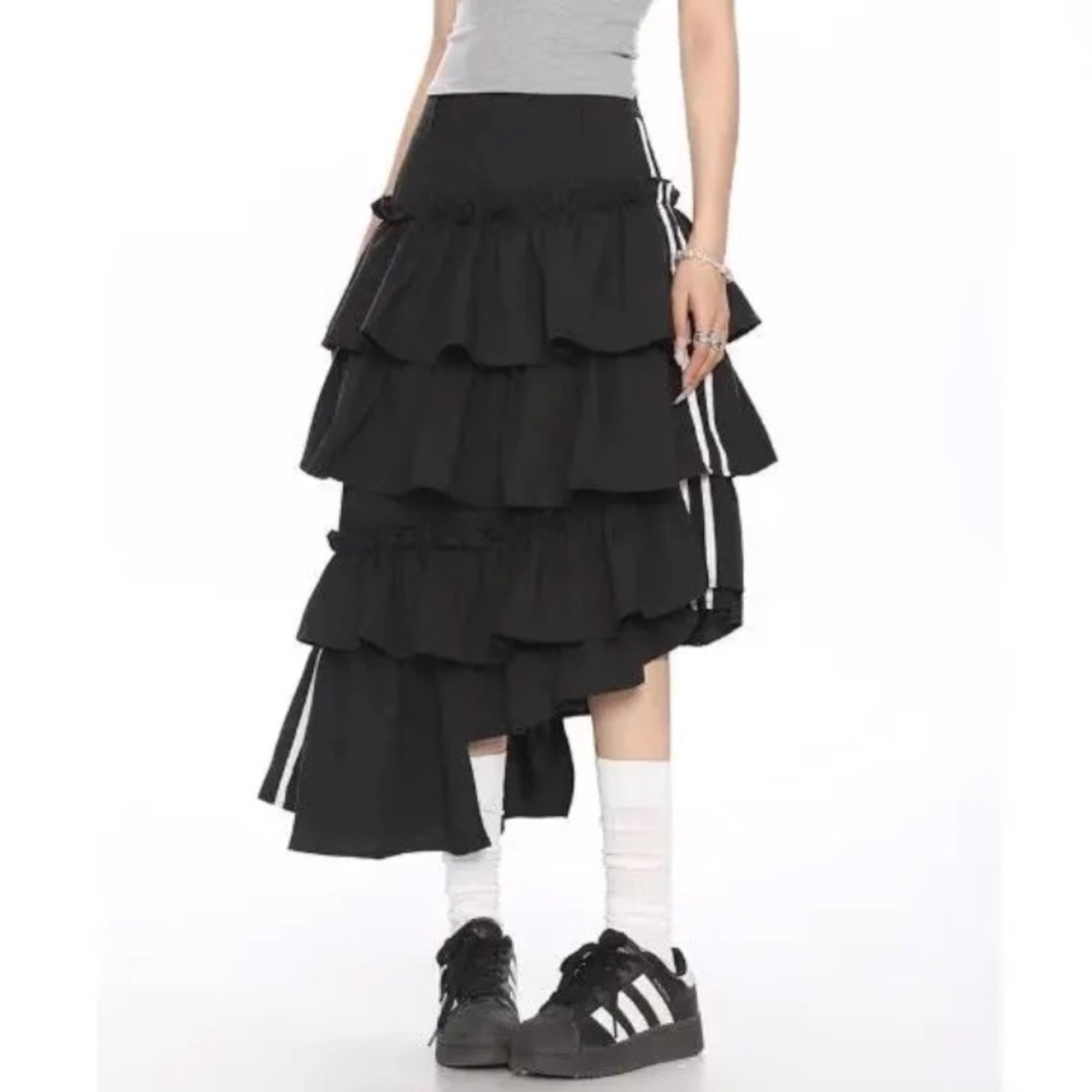 ティアード フリル ロング スカート ライン アシンメトリー 韓国 ストリート系 Y2K スポーティー レディース ファッション 9T-134
