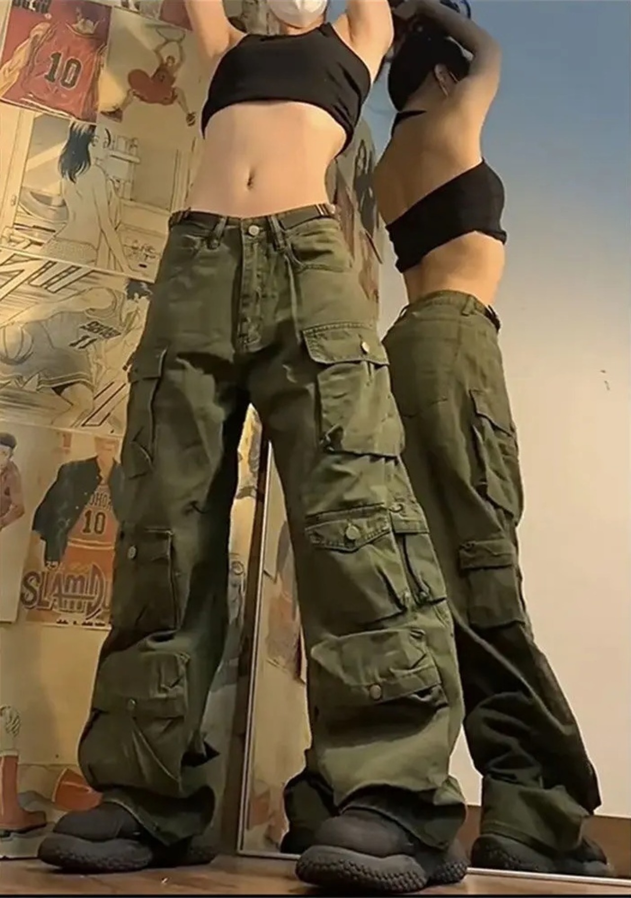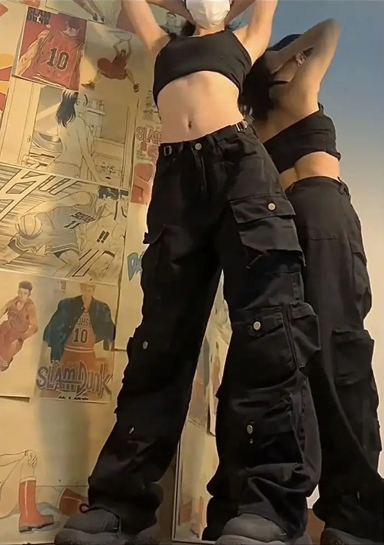 カーゴ パンツ マルチポケット 韓国 ストリート系 ダンス 衣装 Y2Kファッション K-POP HIPHOP レディース 9PA-35