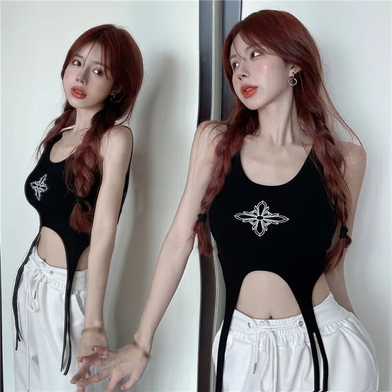 タンクトップ アシンメトリー クロス 十字架 インナー 韓国 レディース ストリート系 ダンス 衣装 K-POP HIPHOP トップス 夏 Y2K ファッション 9T-135