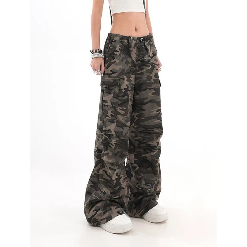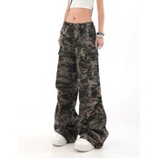 カモフラ 迷彩柄 カーゴ パンツ 韓国 ストリート系 ダンス 衣装 Y2Kファッション K-POP HIPHOP レディース 9PA-40