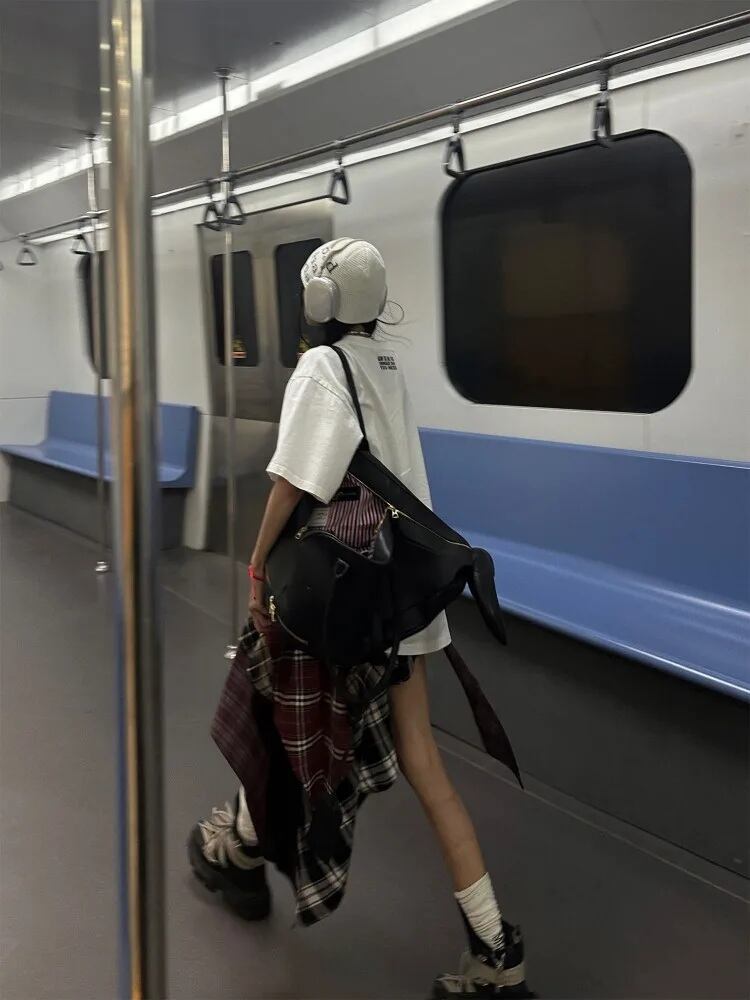 複数のチェック柄を大胆に切り替えた、まるで古着を再構築したようなリメイク風デザイン。