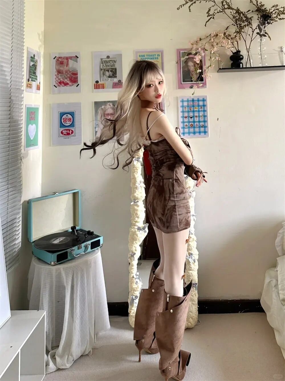ロング ブーツ タック くしゅくしゅ 韓国 ストリート モード系 ギャル スナップボタン レディース 9SHO-33