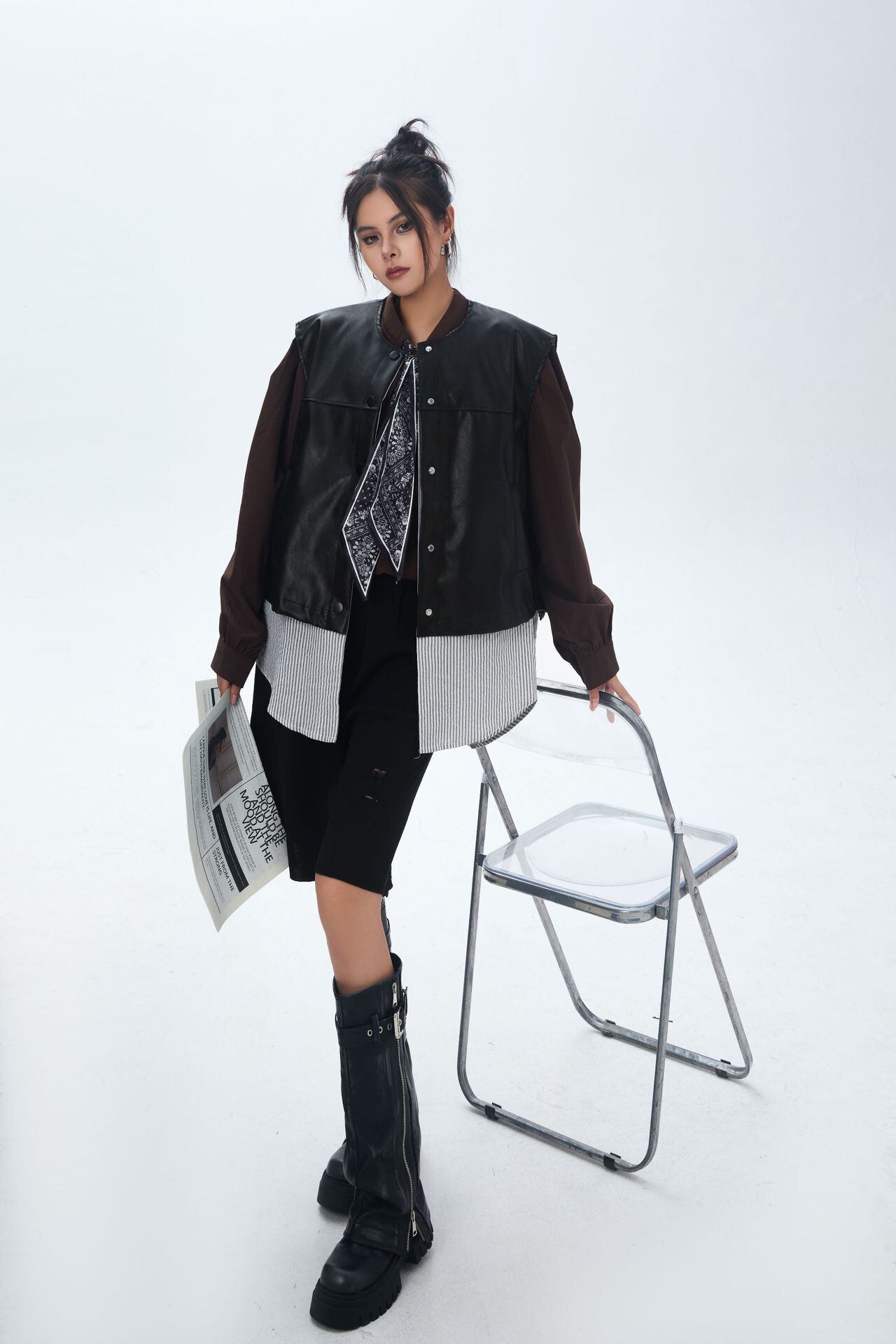 ★レイヤード見えが叶う、モードなレザーベスト