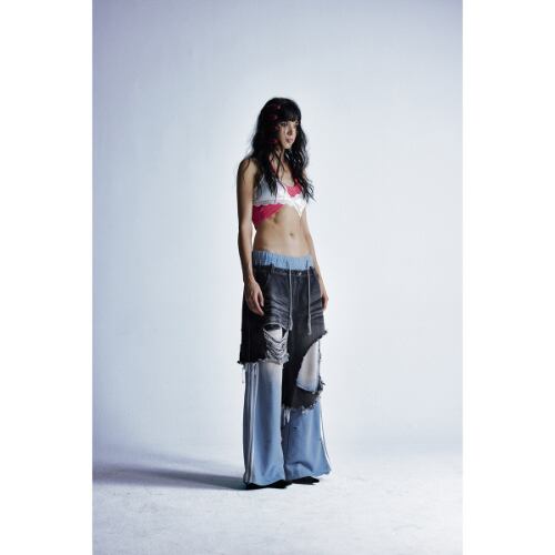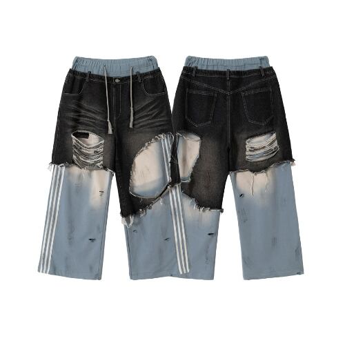 リメイク風 デニム パンツ 重ね着風 韓国 ダンス 衣装 ストリート系 Y2Kファッション K-POP HIPHOP グランジ レディース 9J-62