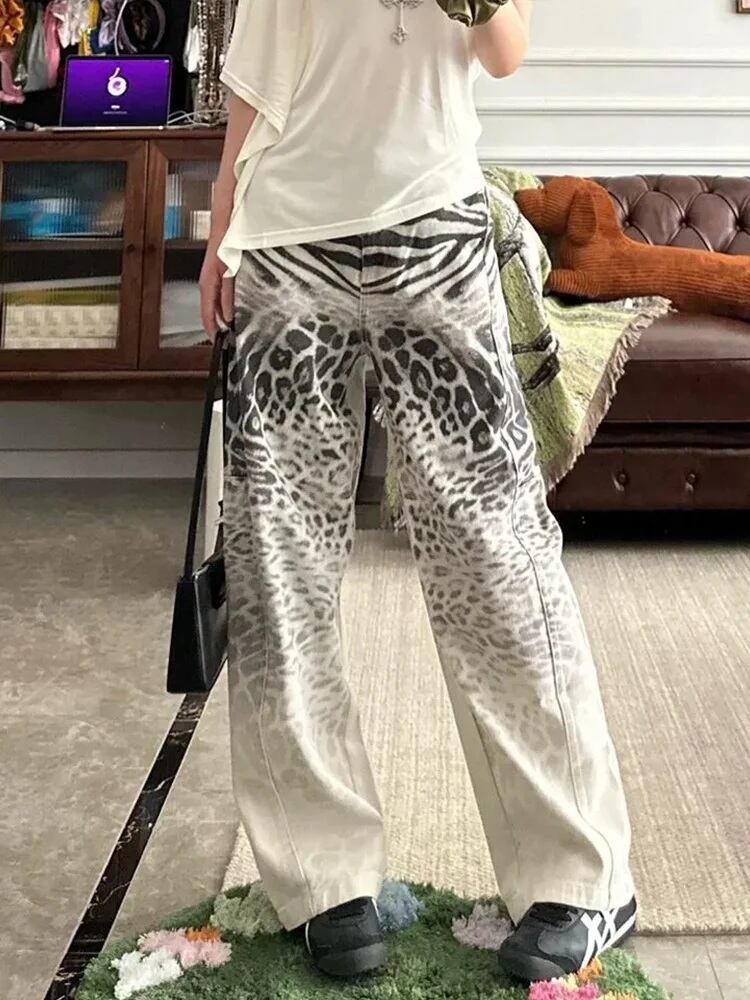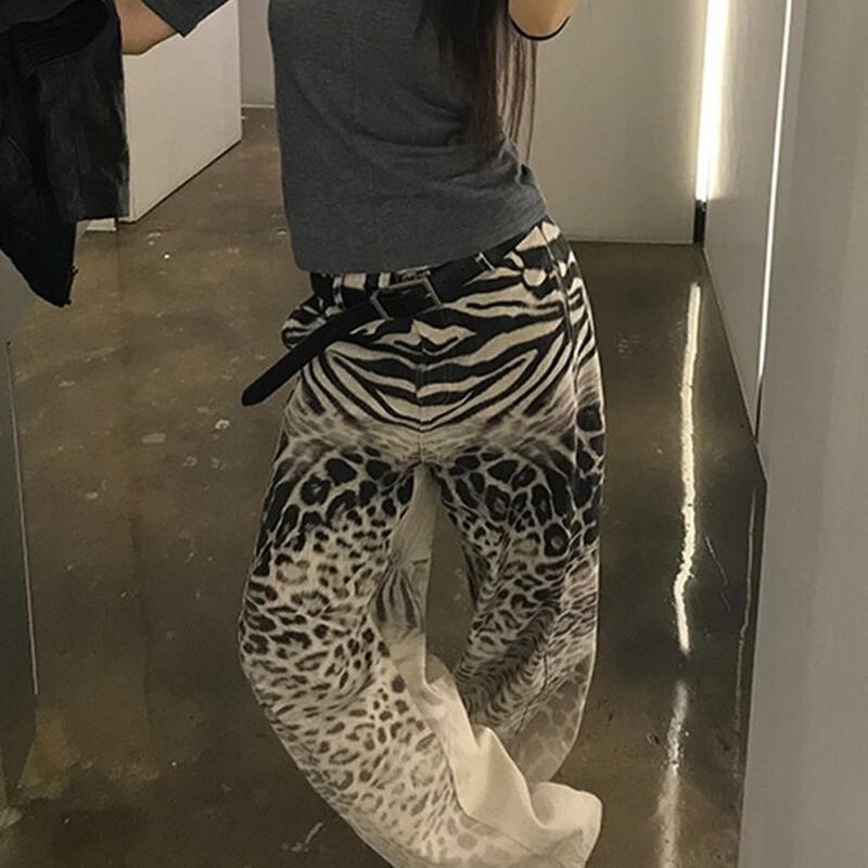 ヒョウ柄 レオパード デニム パンツ ジーンズ 韓国 ストリート系 ダンス 衣装 K-POP HIPHOP グランジ レディース 9J-64