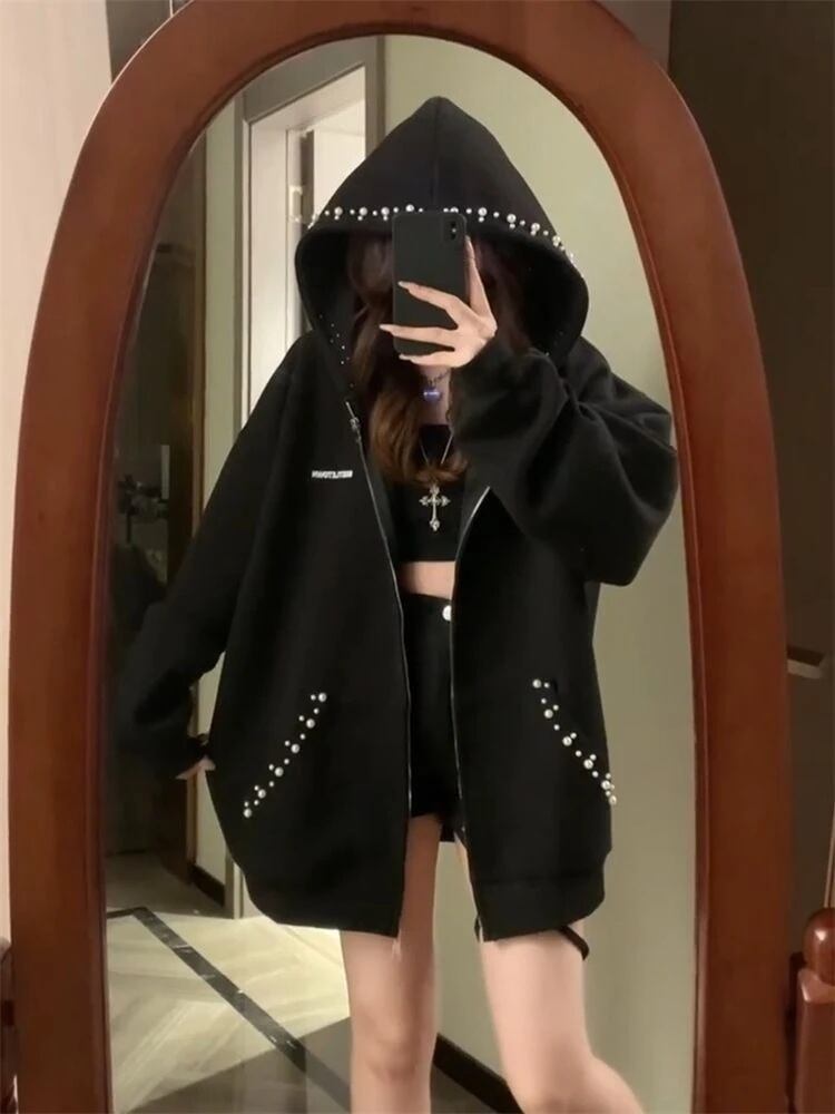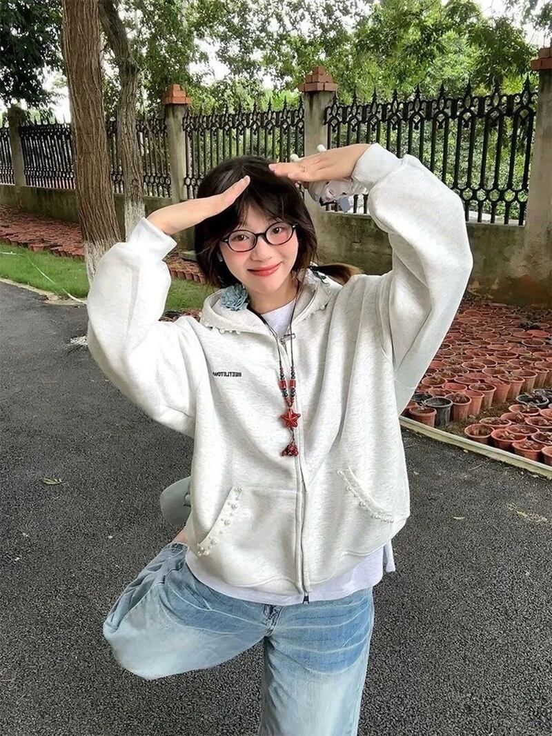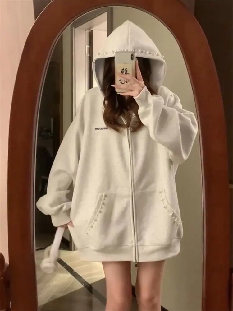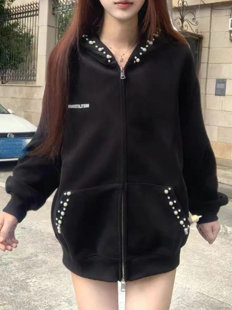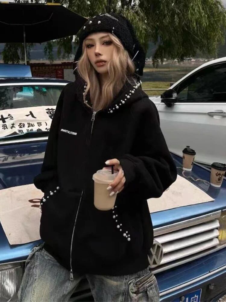 ★パールで魅せる、ラグジュアリーなジップアップパーカー