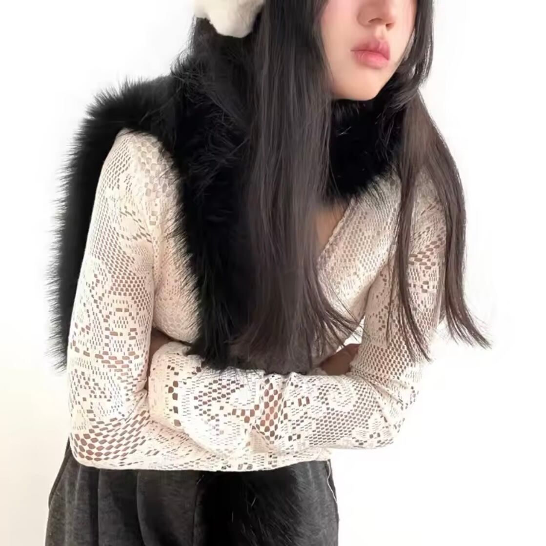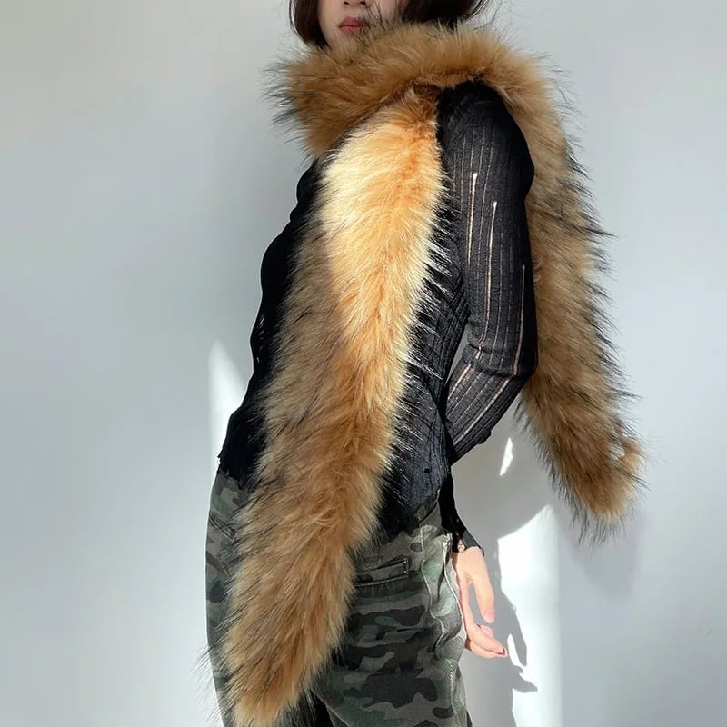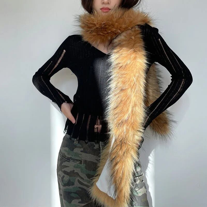 ファー ロング マフラー 韓国 ストリート ダンス 衣装 モード系 ギャル K-POP HIPHOP 冬 レディース 9ACC-17