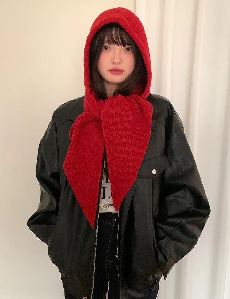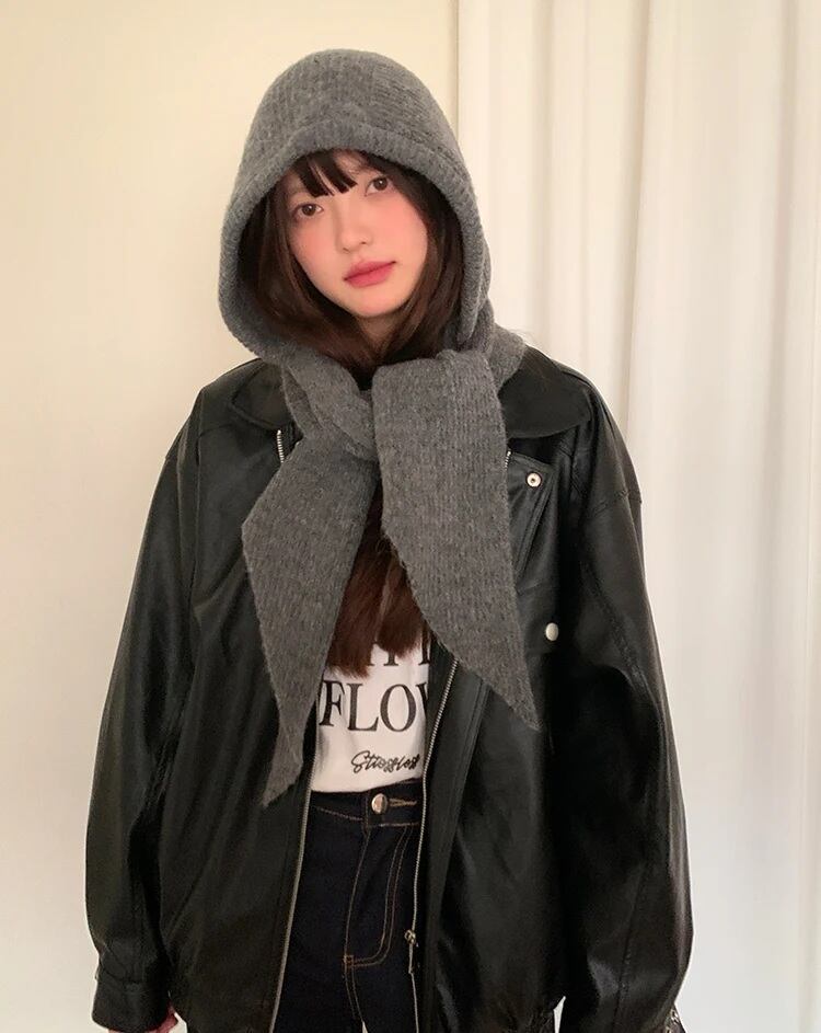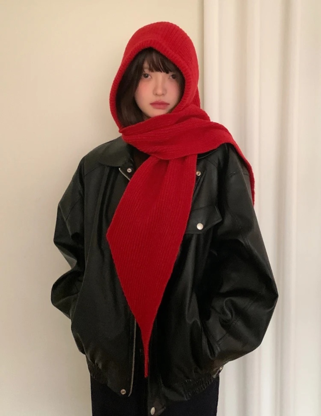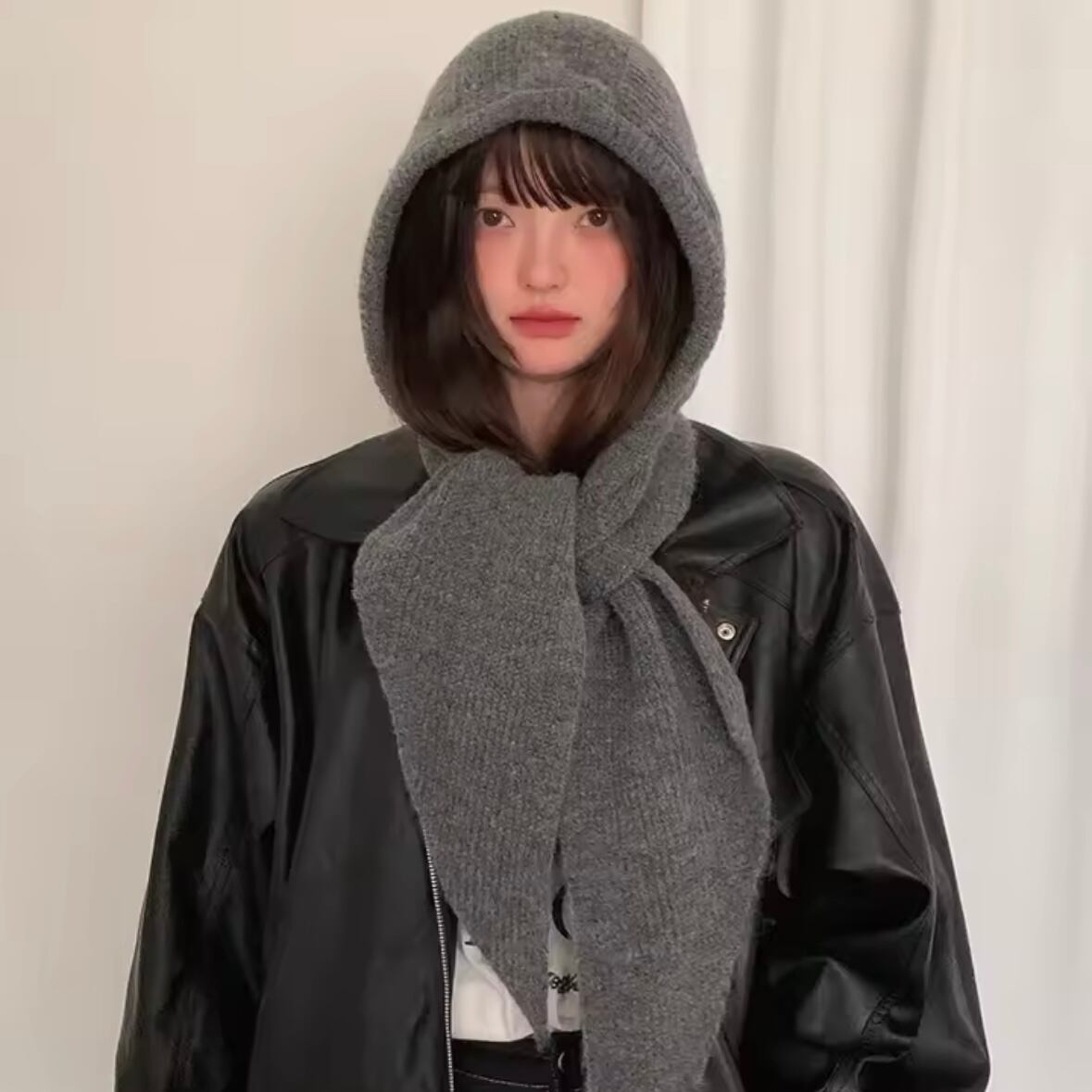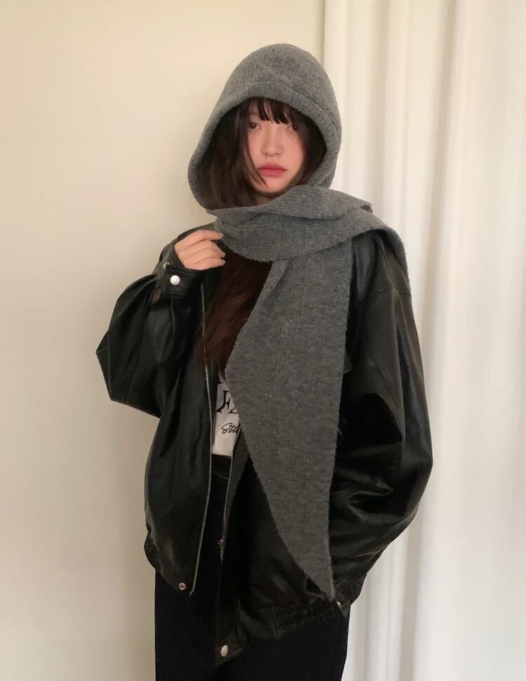 フードとマフラーが一体になったデザインで、首元から頭までしっかり包み込んでくれるあったかアイテム♪