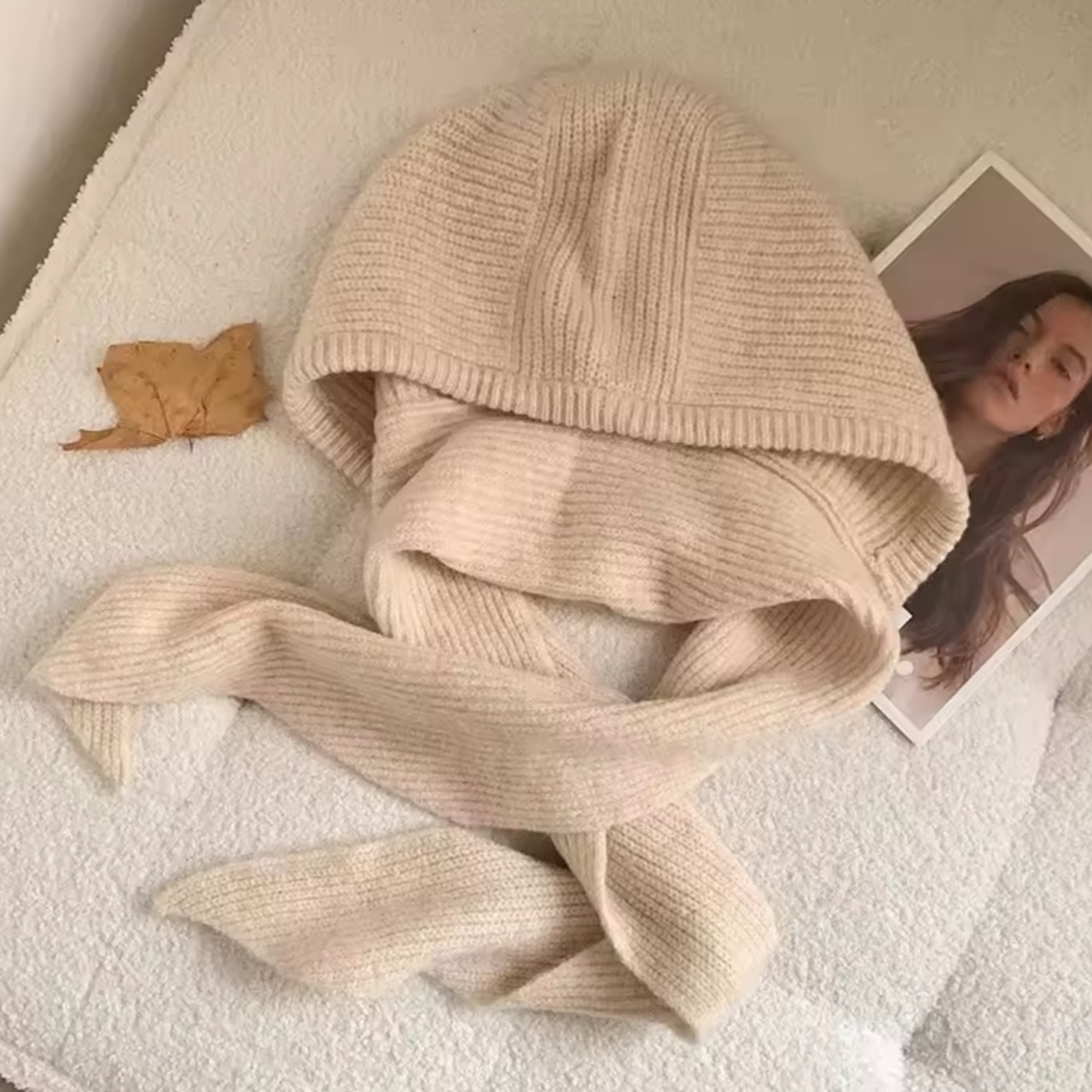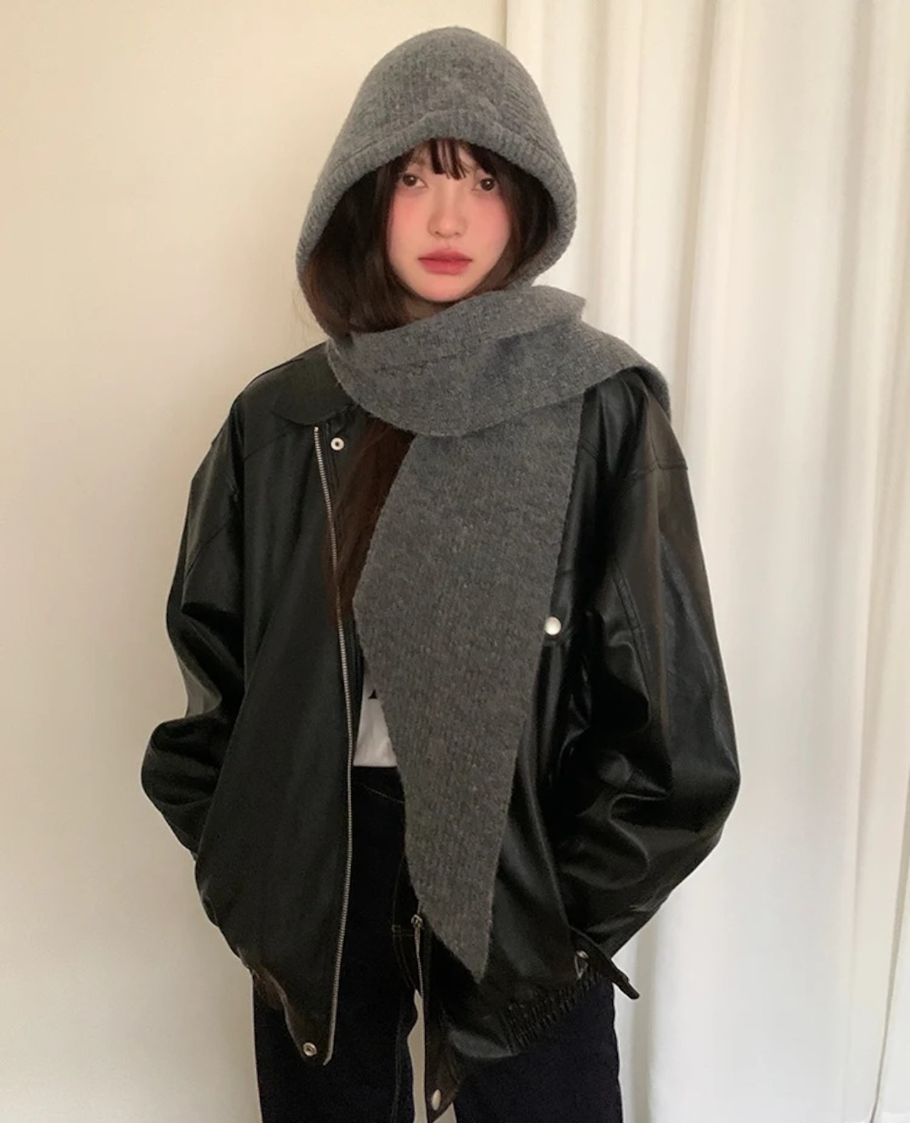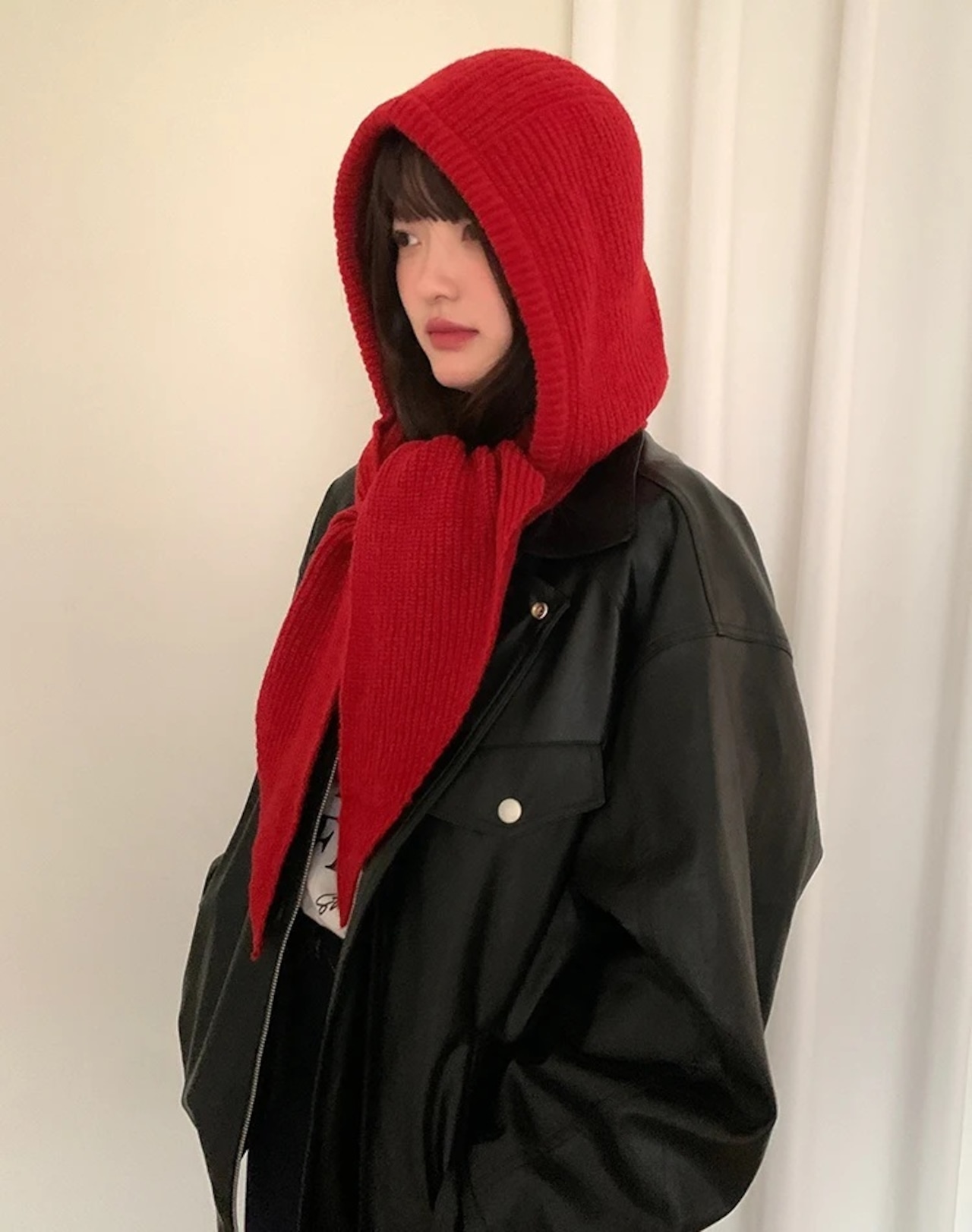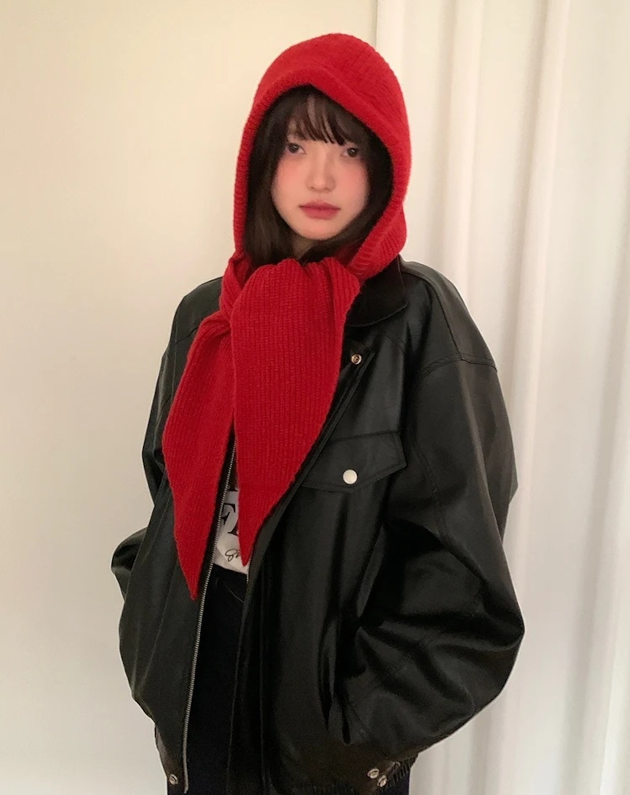 フードとマフラーが一体になったデザインで、首元から頭までしっかり包み込んでくれるあったかアイテム♪