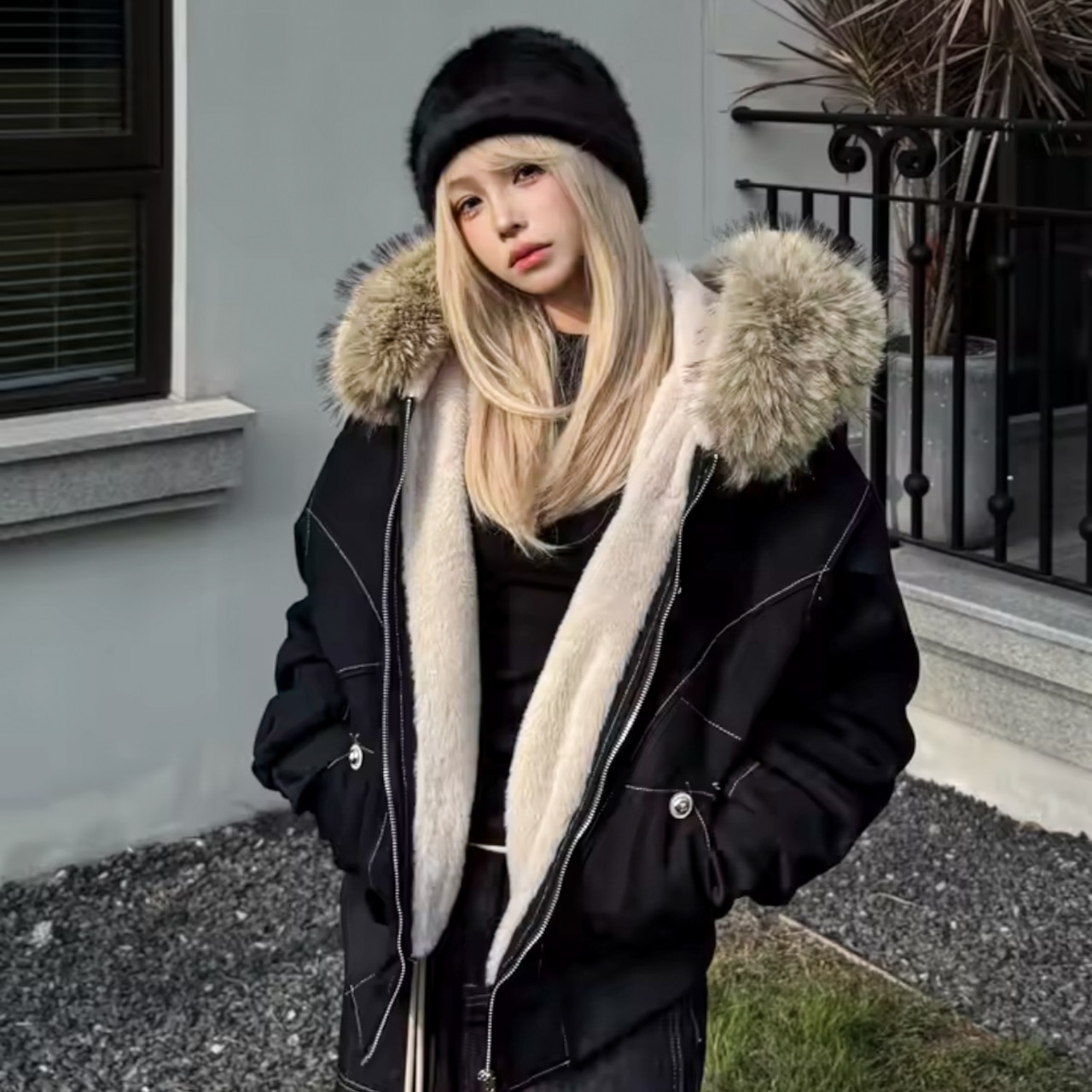 ボア パーカー ジャケット ブルゾン ファー フード 韓国 ストリート系 ギャル 冬 ダンス 衣装 K-POP レディース 9AU-8