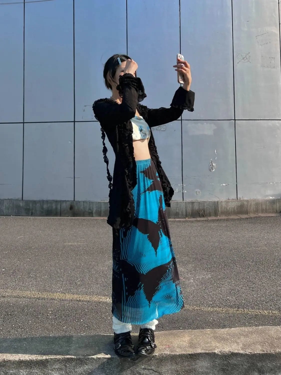 ★個性を引き立てる、バタフライ柄のロングスカート