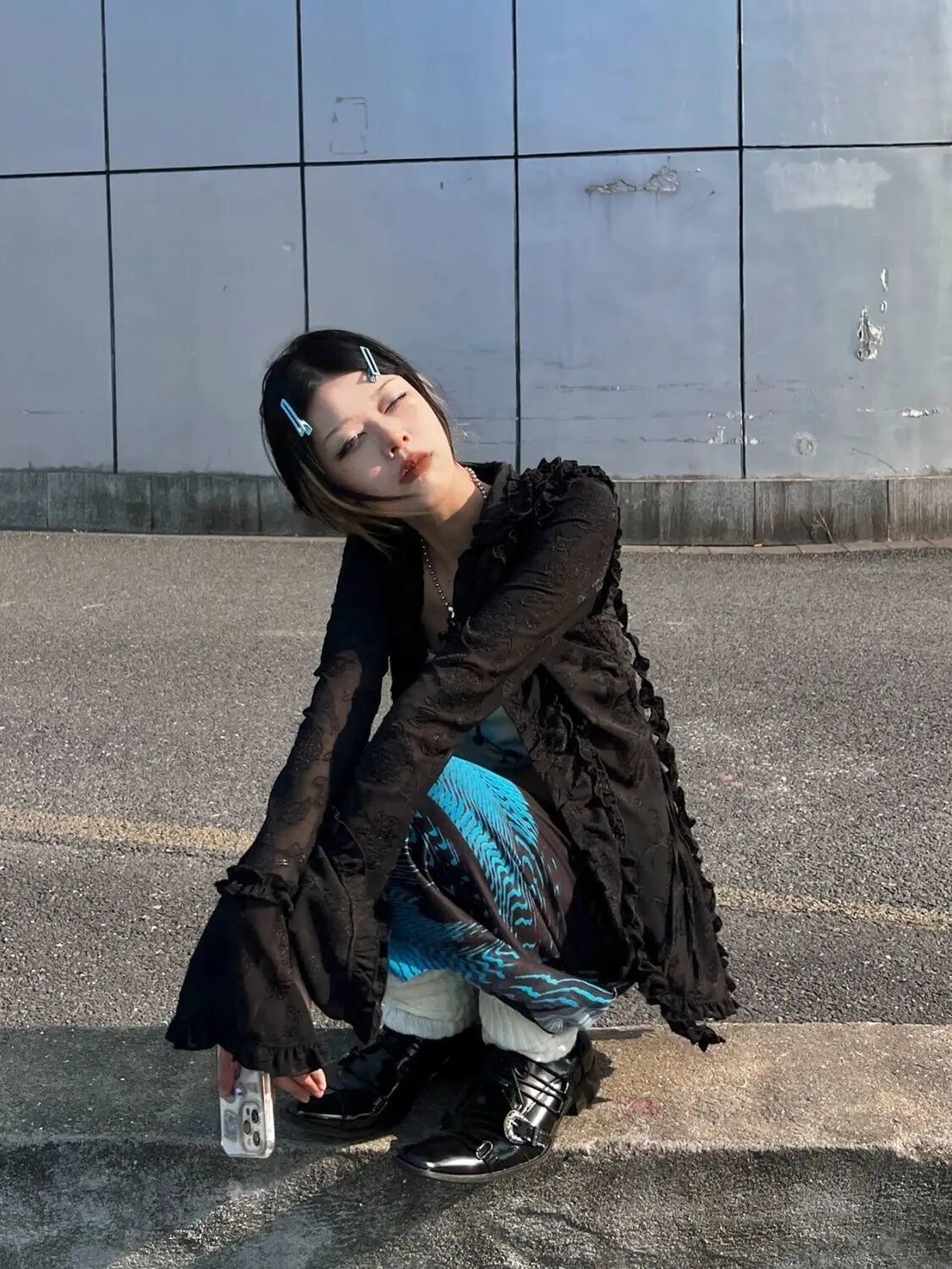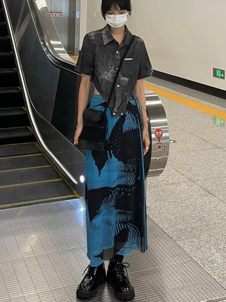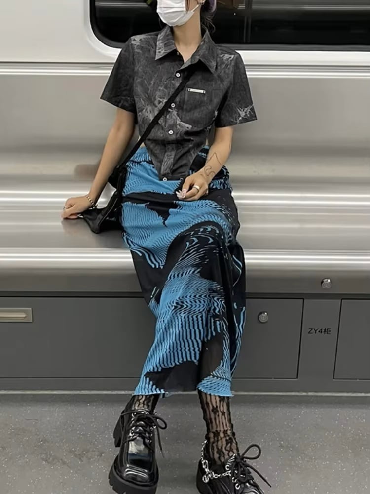 ロング スカート バタフライ柄 韓国 ストリート モード系 ギャル レディース 9SK-14