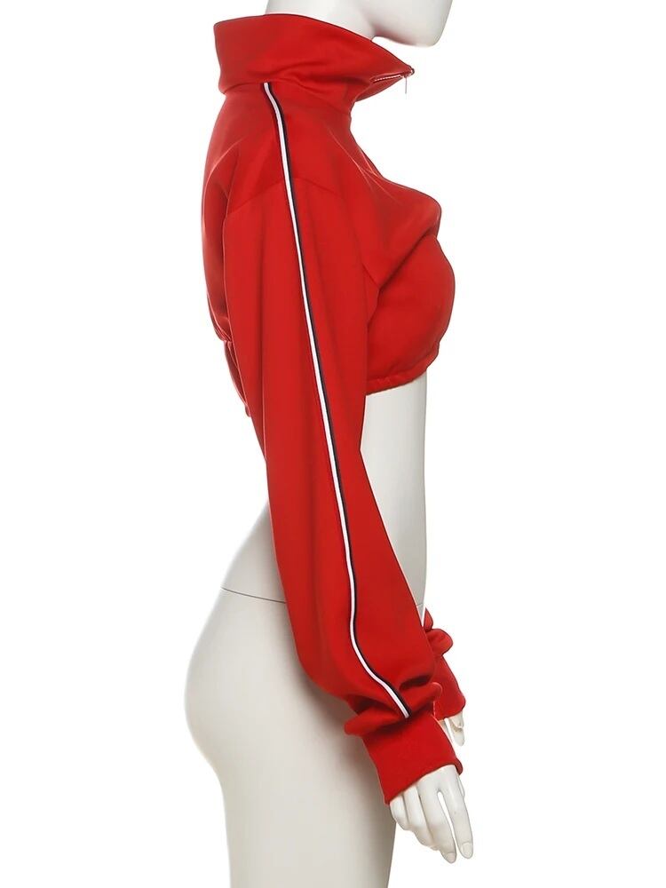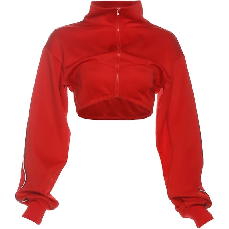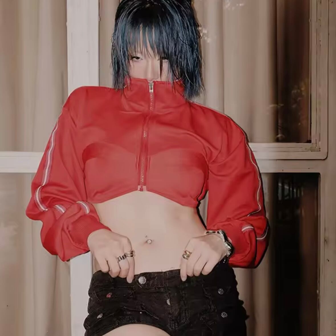 トラック ジャケット ショート丈 ダンス 衣装 韓国 ギャル Y2Kファッション ストリート K-POP HIPHOP 赤 レッド レディース 9AU-13