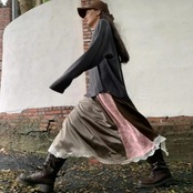 ★異素材切替で魅せる、華やかさと深みを両立したロングスカート