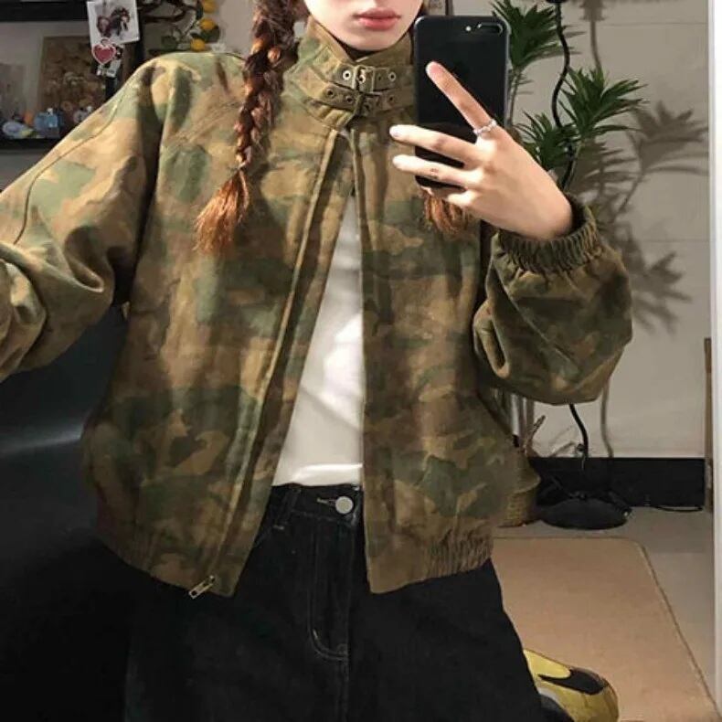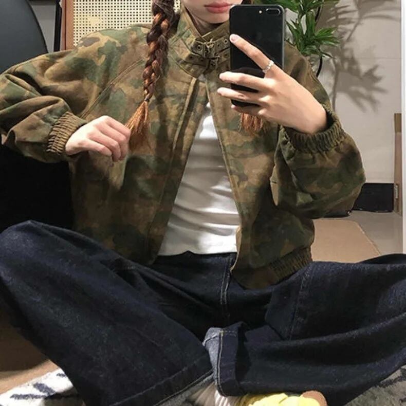 迷彩柄 ジャケット ダンス 衣装 韓国 ストリート ギャル Y2Kファッション K-POP HIPHOP レディース 9AU-16