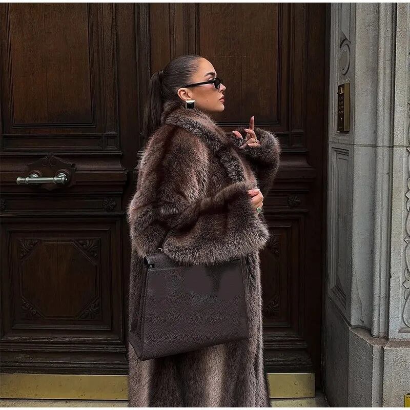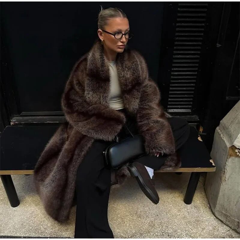 たっぷりとしたボリュームとロング丈が、視線を奪う主役級のファーコート。