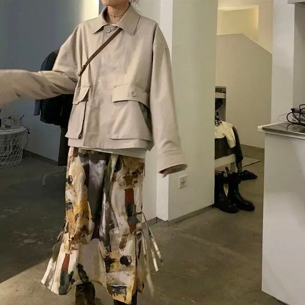 ★ペイント風のラフな模様が映える、アートなロングスカート