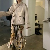 タイダイのようなペイント調の模様が、スタイリングにアートな空気を添えてくれる一枚。