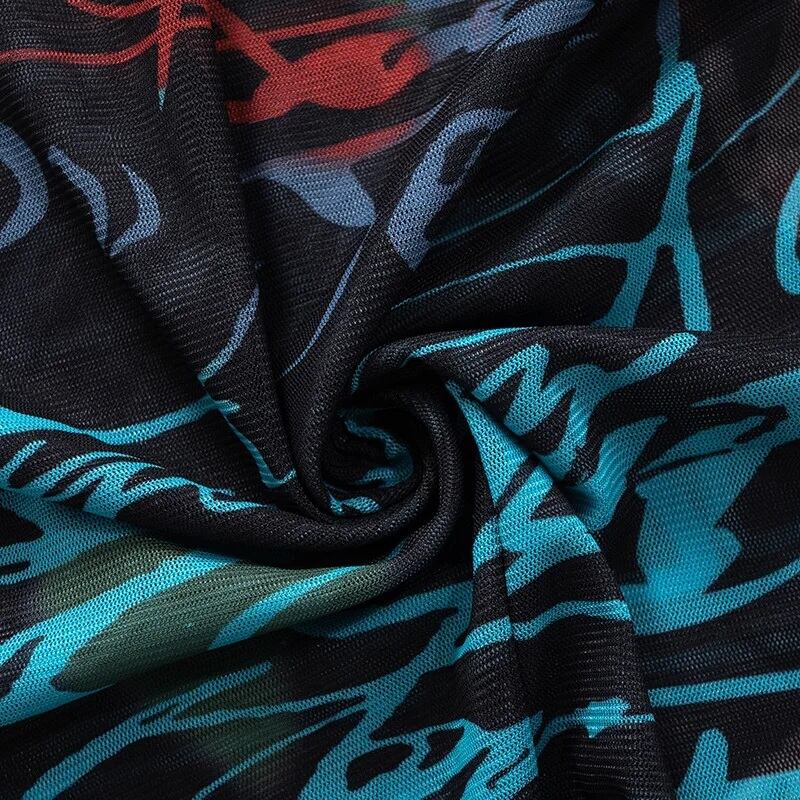 グラフィティのようなロゴが全面に散りばめられた、存在感のあるシアートップス。