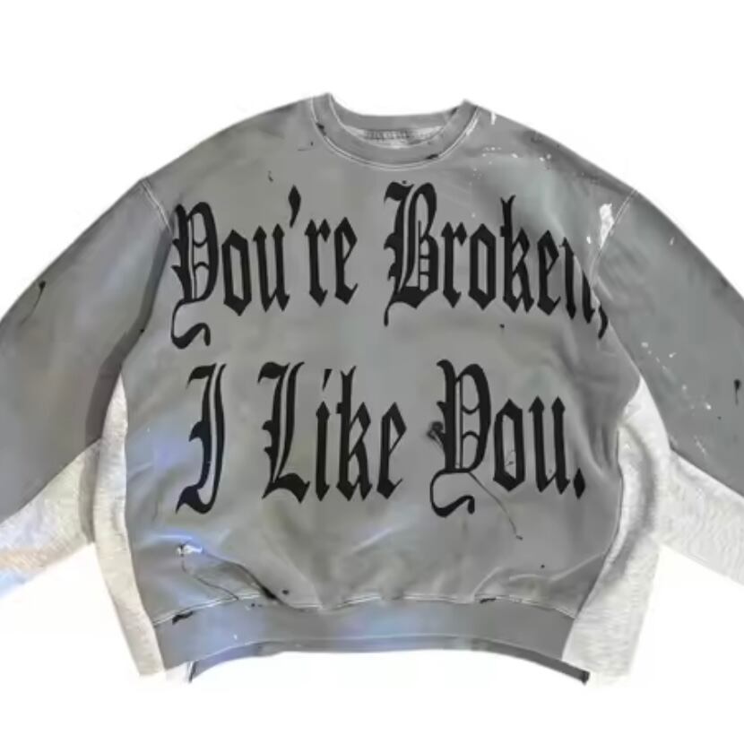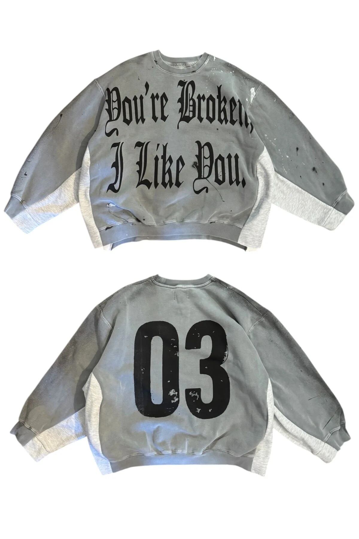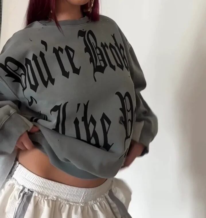 ストリート感のあるロゴと、グランジっぽい質感が絶妙に混ざり合い、着るだけで空気感が出る存在感のあるトレーナーです。
