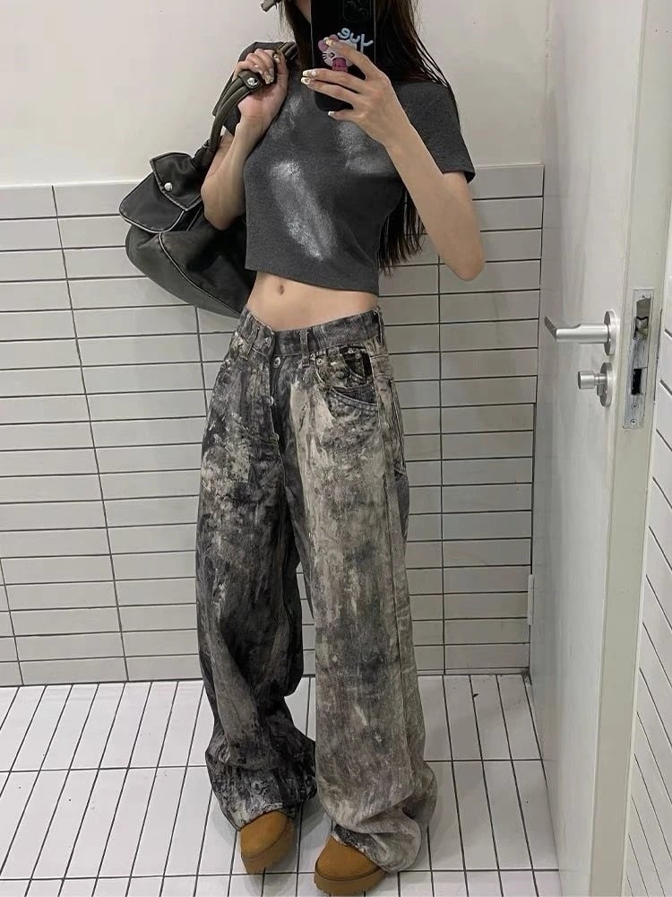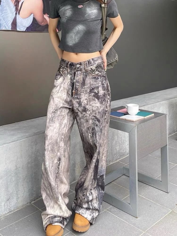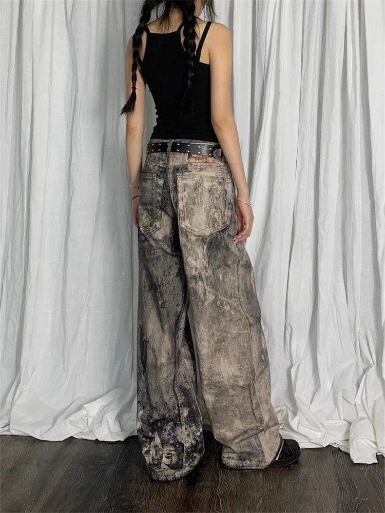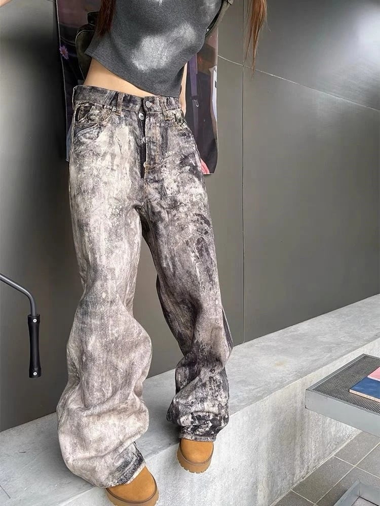 デニム パンツ タイダイ柄 韓国 ダンス 衣装 ストリート系 グランジ K-POP HIPHOP Y2K オピウム ジーンズ レディース 9J-72