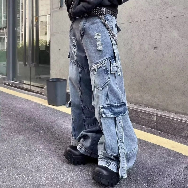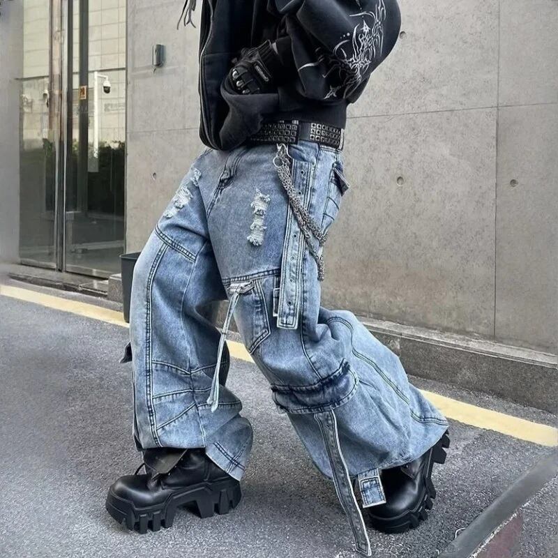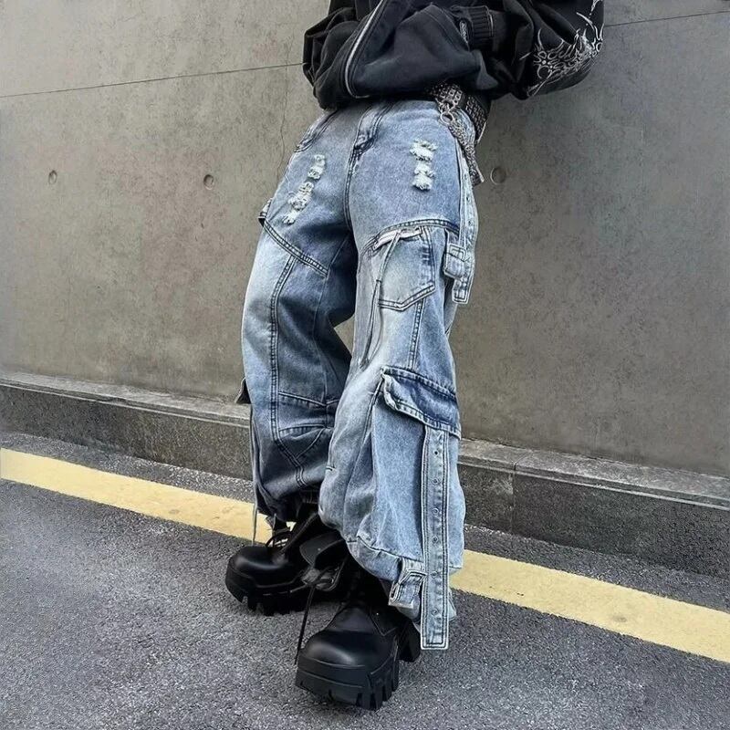 デニム カーゴ パンツ 韓国 ストリート系 ダンス 衣装 K-POP HIPHOP オピウム ジーンズ レディース 9J-73