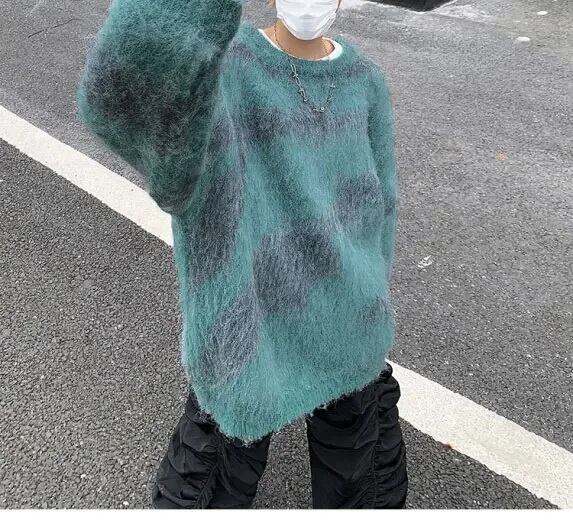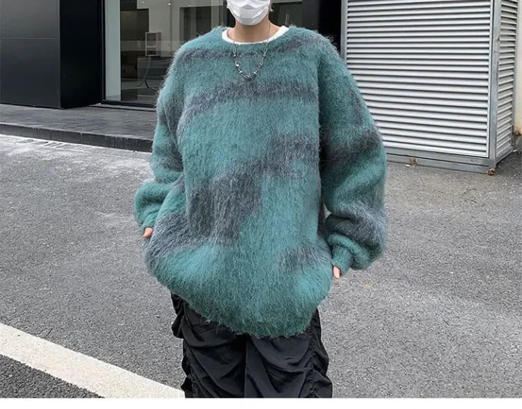 モヘア ニット セーター ボーダー 韓国 ストリート系 グランジ 幾何学模様 レディース 9NI-9