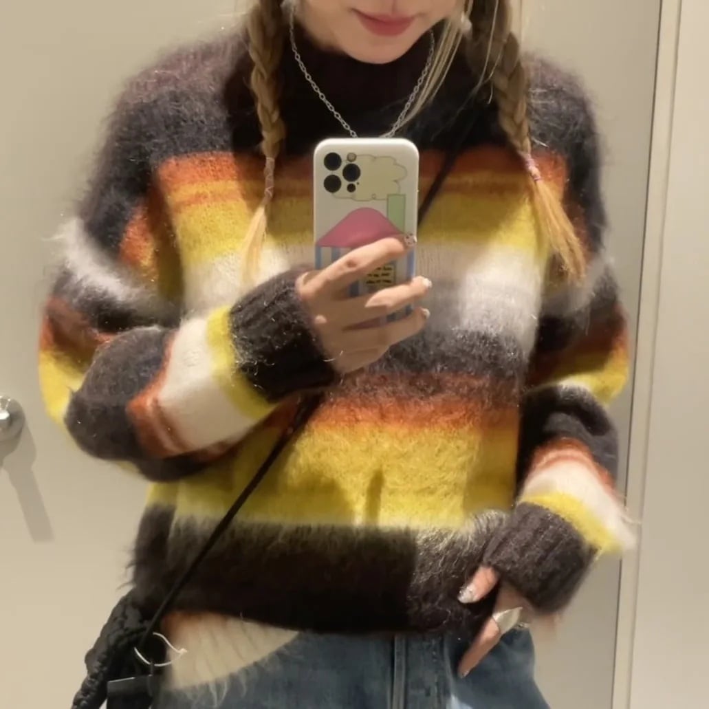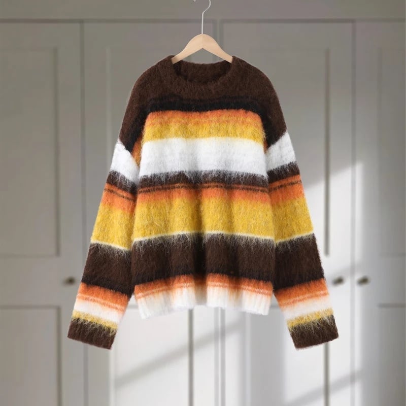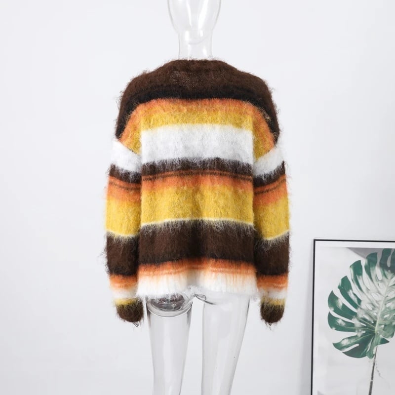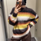 モヘア セーター ニット ボーダー柄 韓国 ストリート 海外 ギャル 冬 トップス レディース 9NI-10