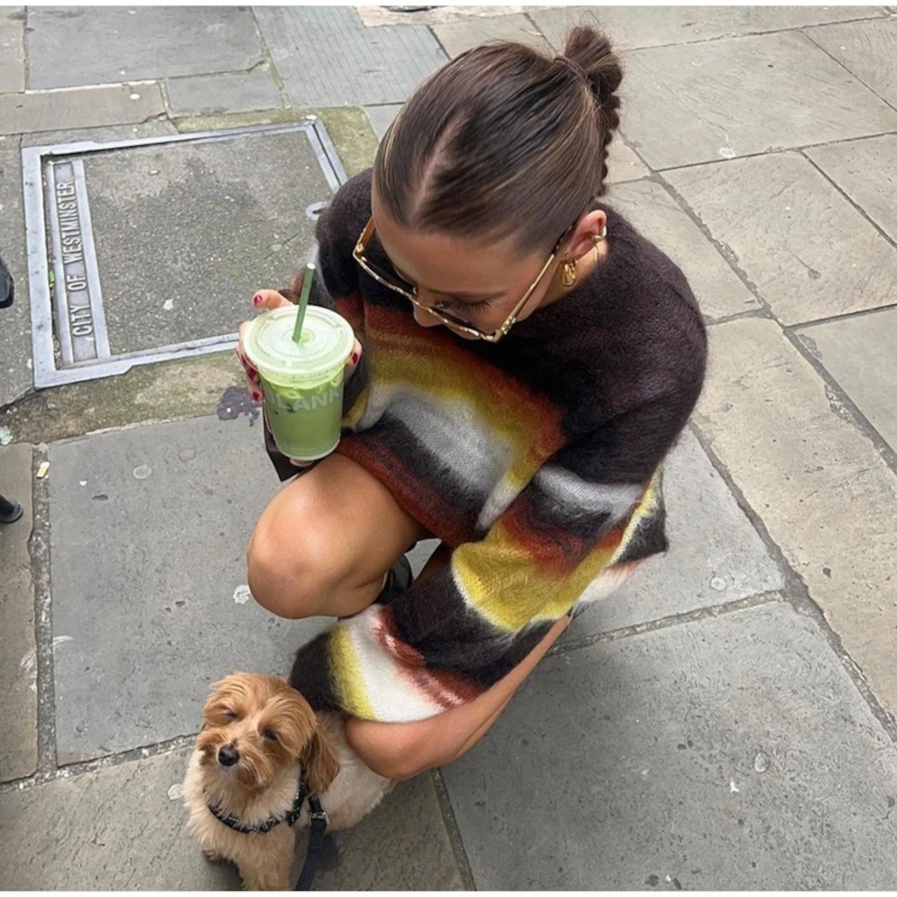 モヘアっぽい毛足のある素材が、見た目にも着心地にもやさしくて、季節感も自然に漂います。