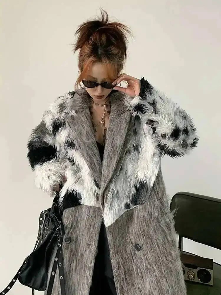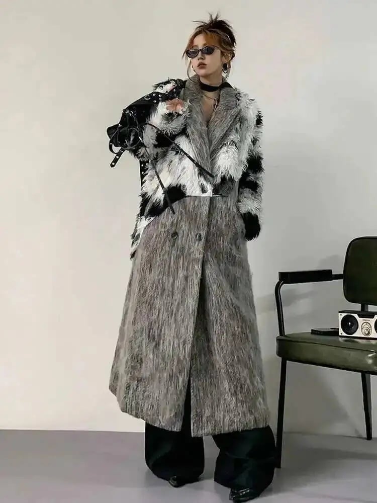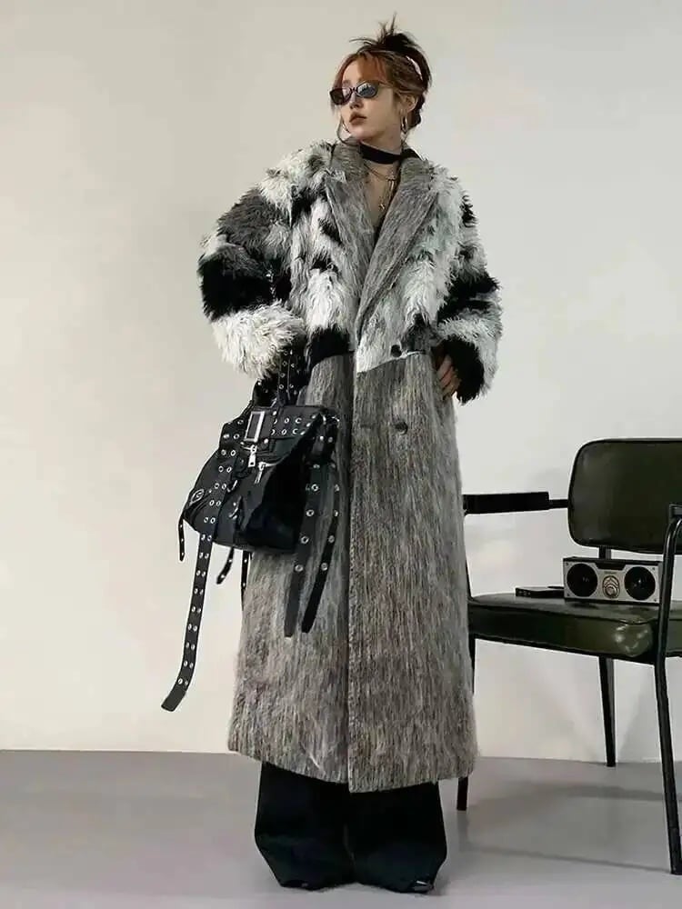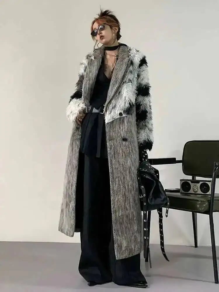ロング チェスター コート ファー ウール調 韓国 ストリート モード系 オピウム 冬 レディース 9AU-24