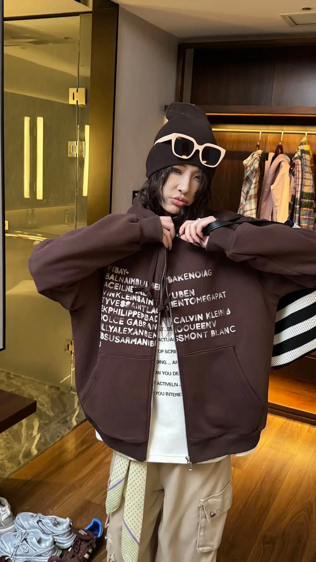 ロゴ ジップアップ パーカー 韓国 ストリート グランジ ダンス 衣装 K-POP レディース 9T-181