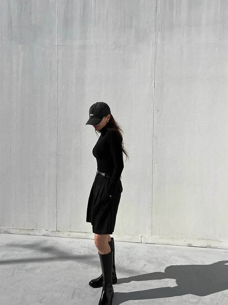丈は短すぎず、脚をすっきり見せつつも大人っぽい印象に仕上がります。