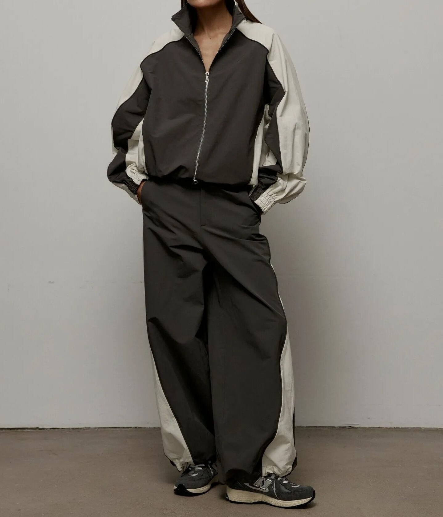 ジャケットとパンツの裾はドロスト仕様で、シルエットの調整ができるのも嬉しいポイント。