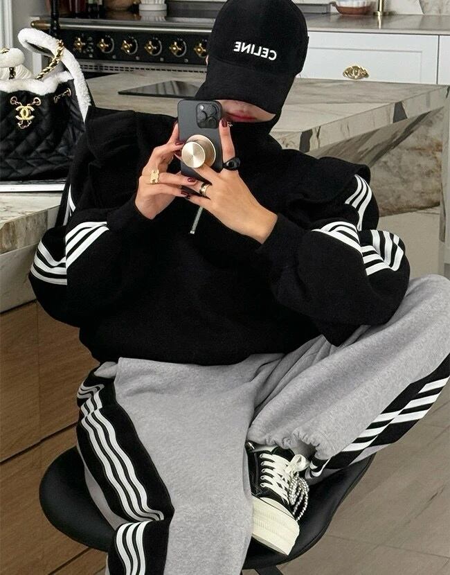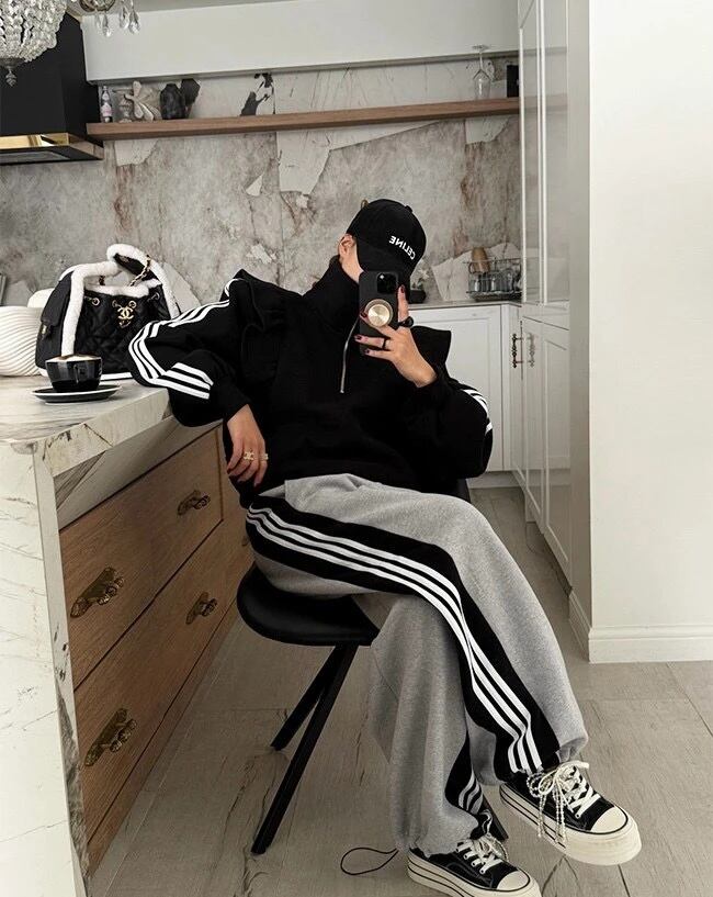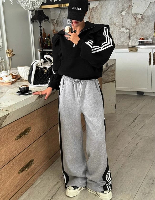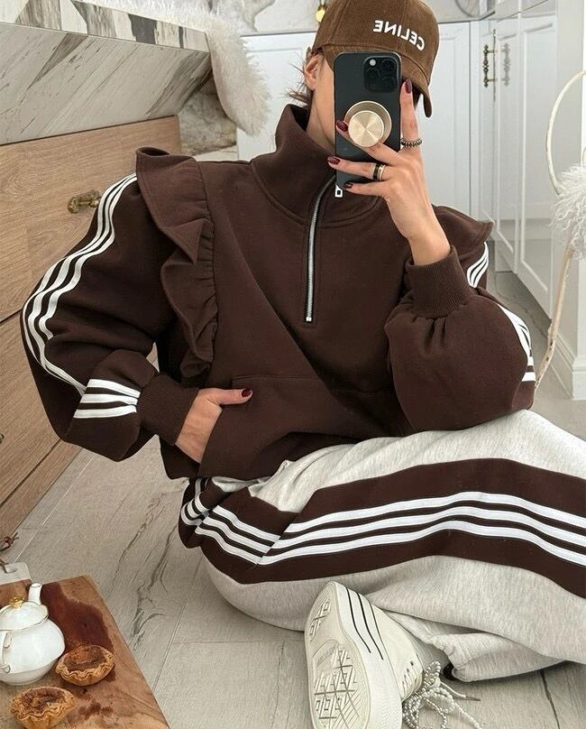 スウェット セットアップ ハーフジップ フリル ライン トレーナー 韓国 ストリート スポーティー バレエコア ダンス 衣装 K-POP レディース SE-873