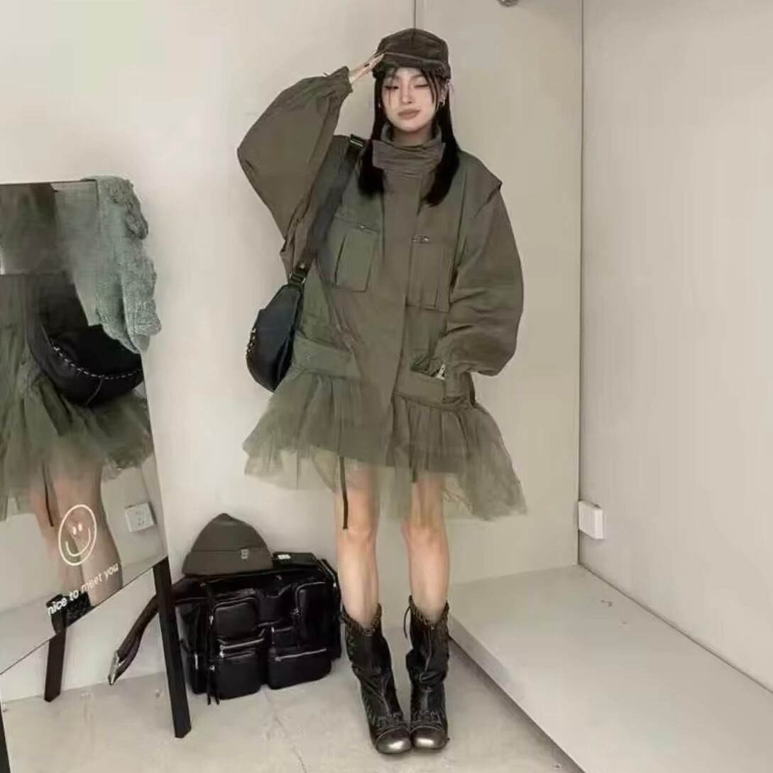 ミリタリー ジャケット チュール 韓国 ストリート モード系 ダンス 衣装 K-POP 春 秋 レディース 9AU-35