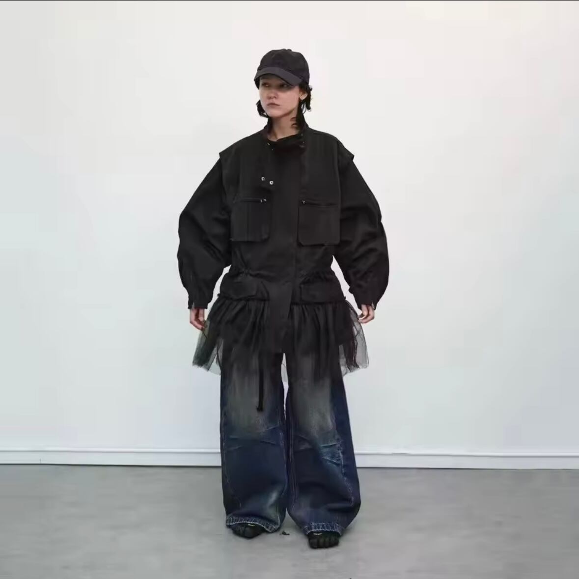 ★ストリート定番ミリタリージャケットに、裾のチュールを重ねたデザインが新鮮な一着。