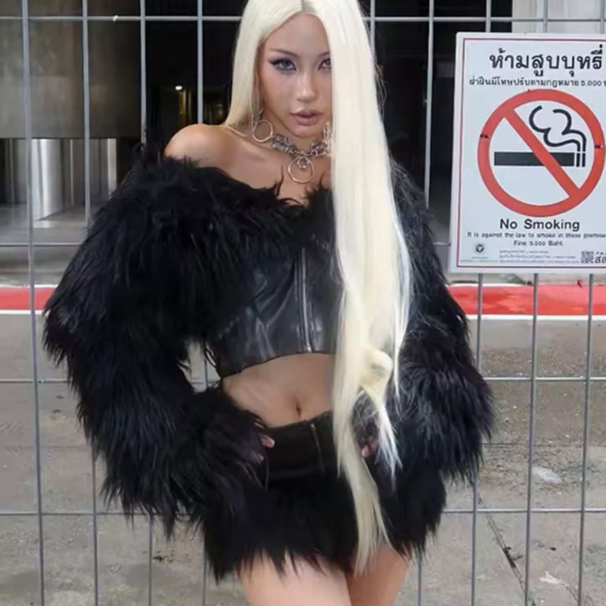 ファー レザー セットアップ ミニスカート 韓国 ストリート 海外 ギャル モード系 ダンス 衣装 K-POP レディース SE-874