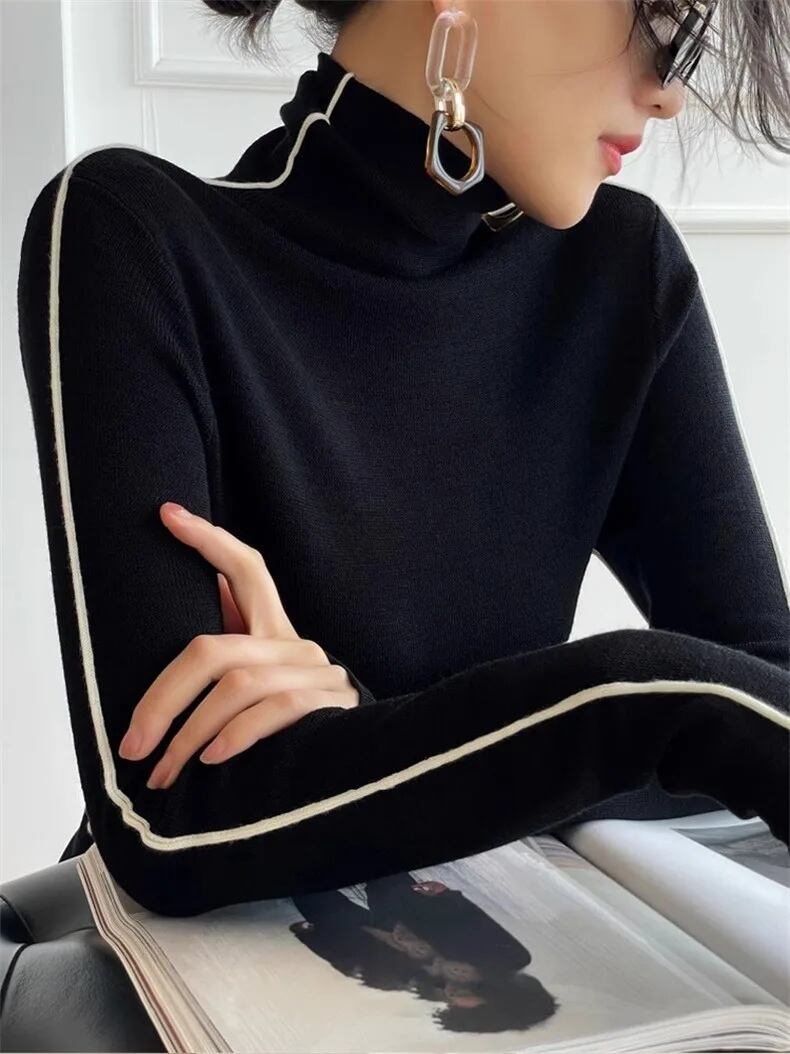 ハイネック ライン ニット トップス 長袖 ロンT 韓国 ストリート モード系 レディース 9T-189