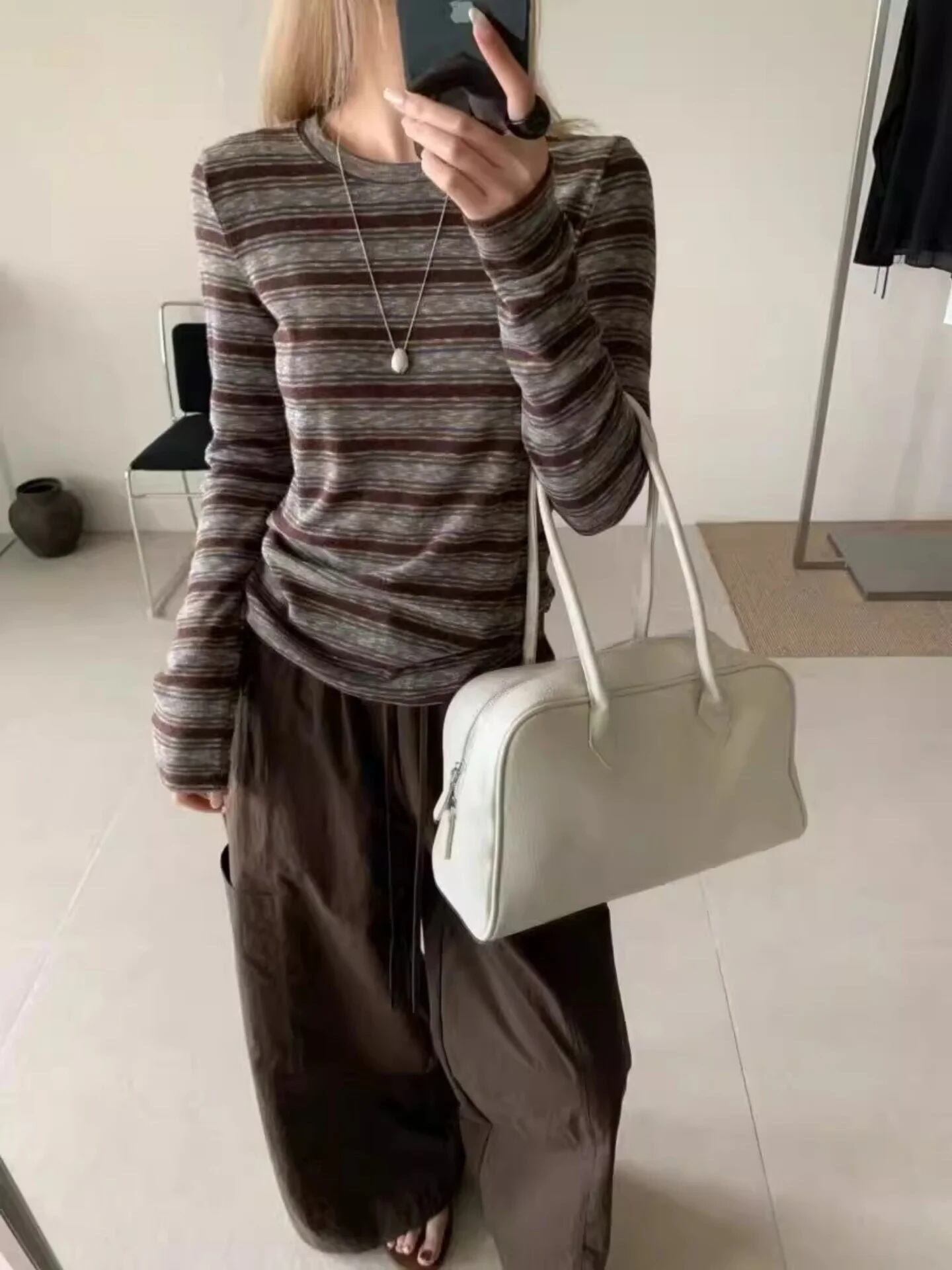 ボーダー柄 ニット トップス 薄手 長袖 ロンT 韓国 ストリート Y2K 春 秋 レディース 9NI-14