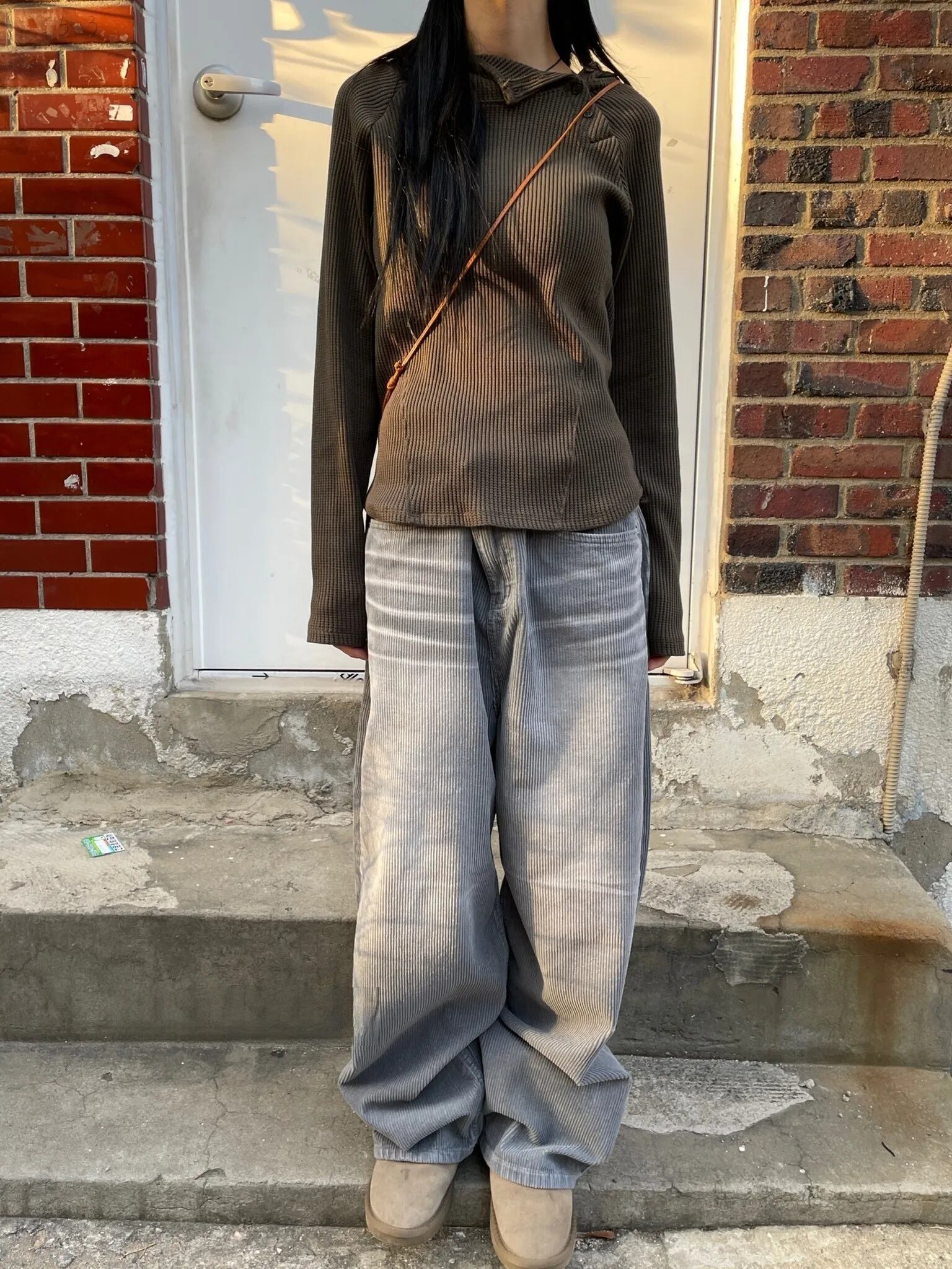 サーマル特有の凹凸感が立体的に見せてくれるから、1枚で着てもこなれた雰囲気に仕上がるのが魅力。