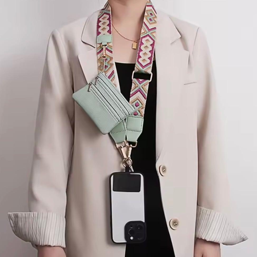ミニポーチには、ICカードや鍵、リップなどの小物もスマートに収納できます。買い物や散歩、旅行など、どんなシーンでもあなたを自由にするバッグレス・アイテムです。
